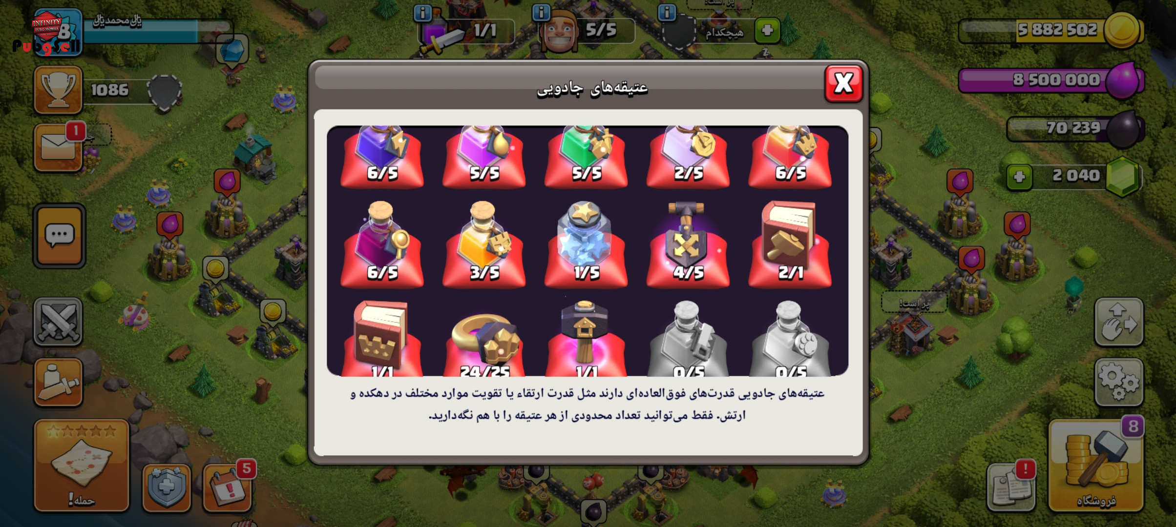 اکانت خوبیه همه نیروهاش مکسه سلیمانی مکس ی چکش ارتقاع تان داره کلی همه چه داری.. به پول نیاز دارم