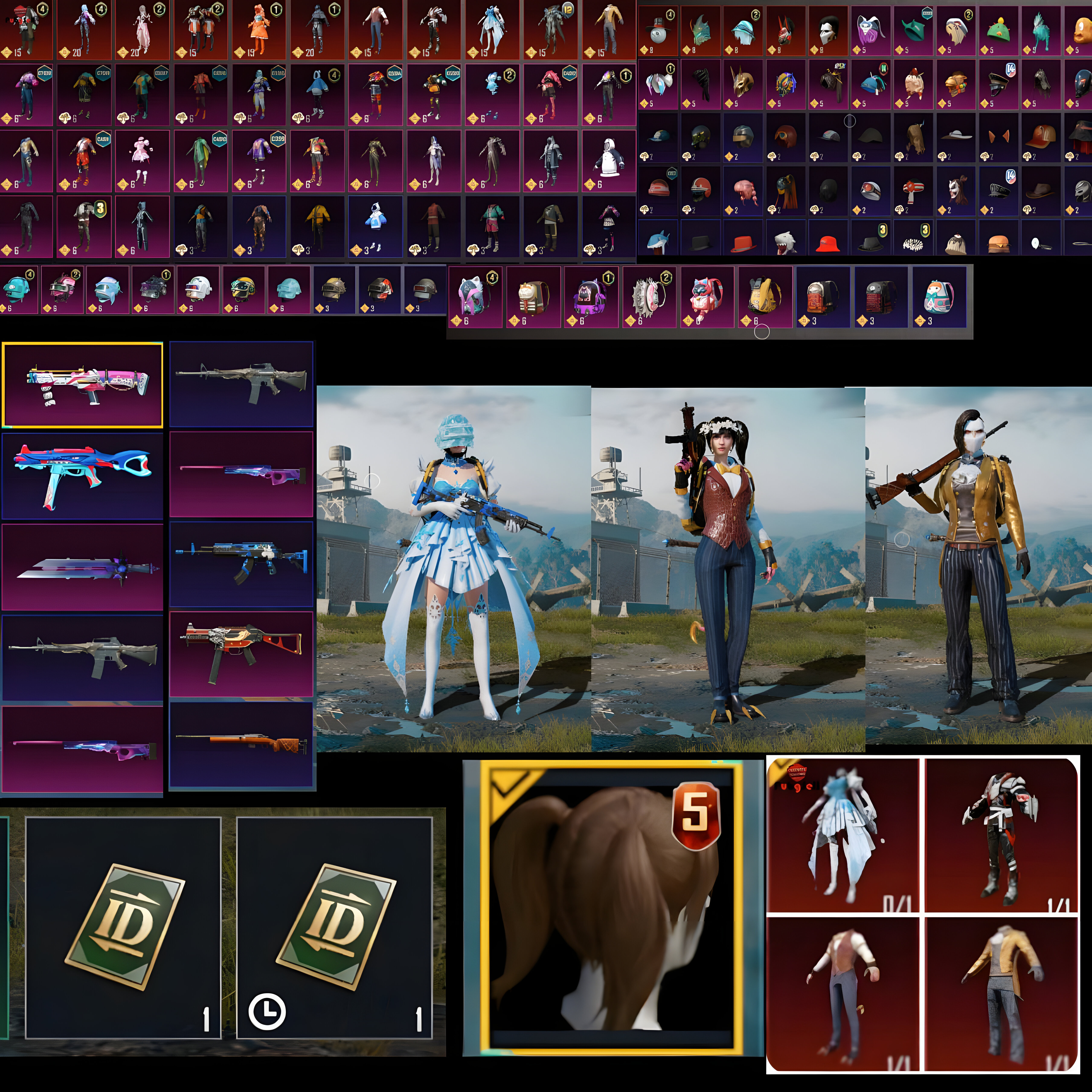 اکانت مفت و خوش شانس 8 تا گان آپگریدی: ایدبل لول 1 M24 لول 1 M16 لول 1 یو ام پی لول 1 یونیکورن اول 2 اون یکی یو ام پی لول 2 قمه لول 3 Dbs لول 3 3 عدد متیک غیر آرپی خاص ست یخی هلمت یخی موی سیزن 5 معادل 1.200 یوسی تو عدد کارت آیدی روم های هفت روزه و یک روزه 2 عدد متریال مینی