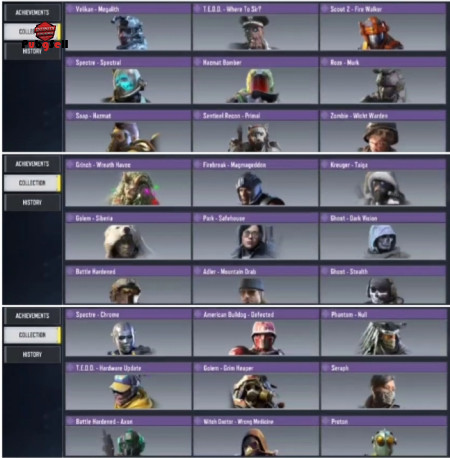 وسایل های لجند: Snowboard,Helicopter,Wingsuit,Prachute,Thermite,Trip Mine,Flashbang Grenade,purifier ,Airborne