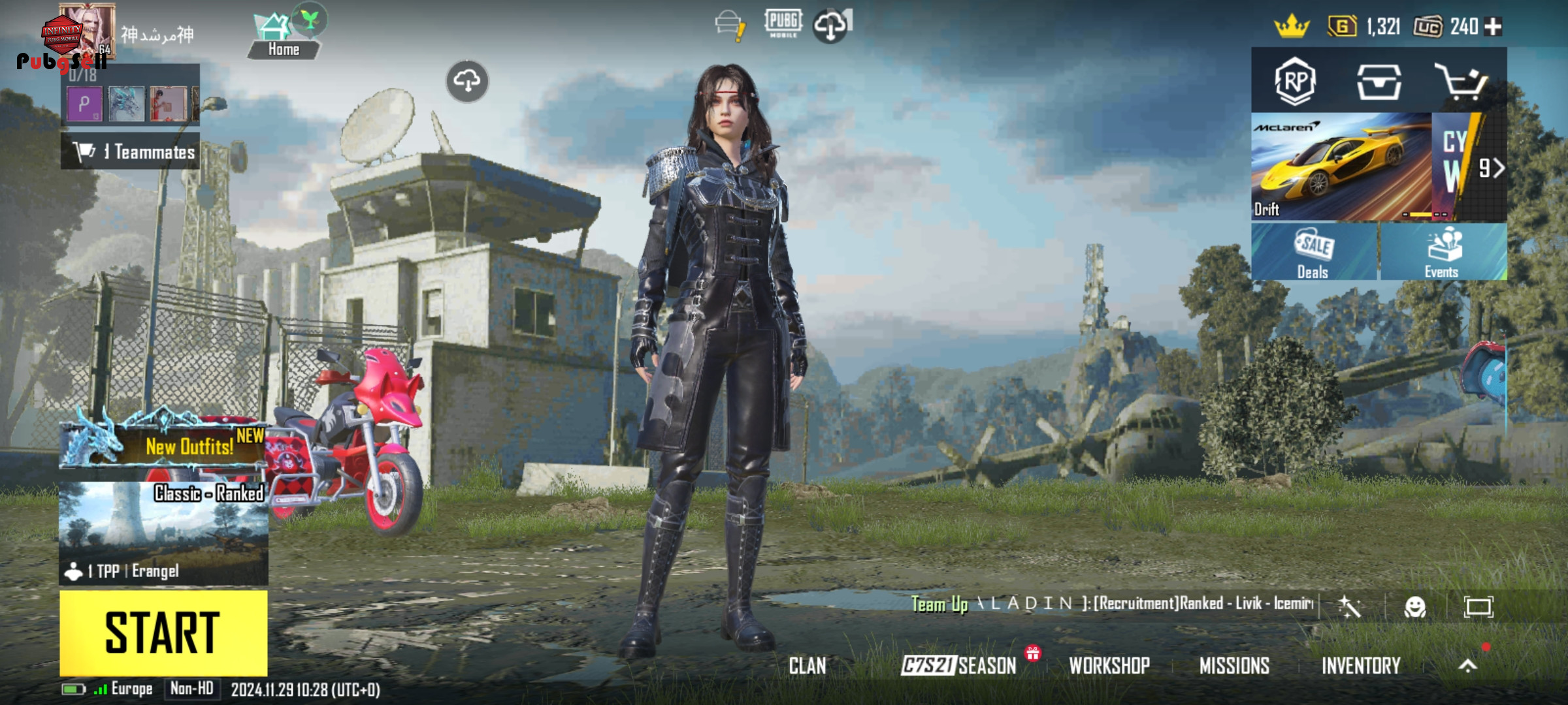 اکانت دارای 1 متریال و6 مینی متریال دارای 1الماس قرمز داری امفور یخی لول 2 M7 lvl 2 خنجر لول 1 M249 lvl 1 Uzi lvl 1 SLR lvl 1 pp19 lvl 1 تامسون لول 3 Pan lvl 1 Dbs lvl 3 Kar lvl 1 sks lvl 1 M24 lvl 1 23 كارت روم يك روزه 13 كارت روم هفتگي