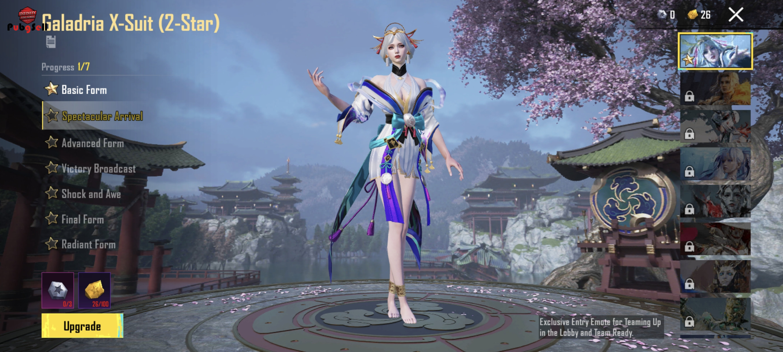 ایکس سویت گالادریا، 15 گان اپگریدی، سه گان کیل مسیج گاد، متیک فشن، 23 مینی متریال(میشه یک گان کیل مسیج کرد)، 70 متیک ویدیو حتمی ببین