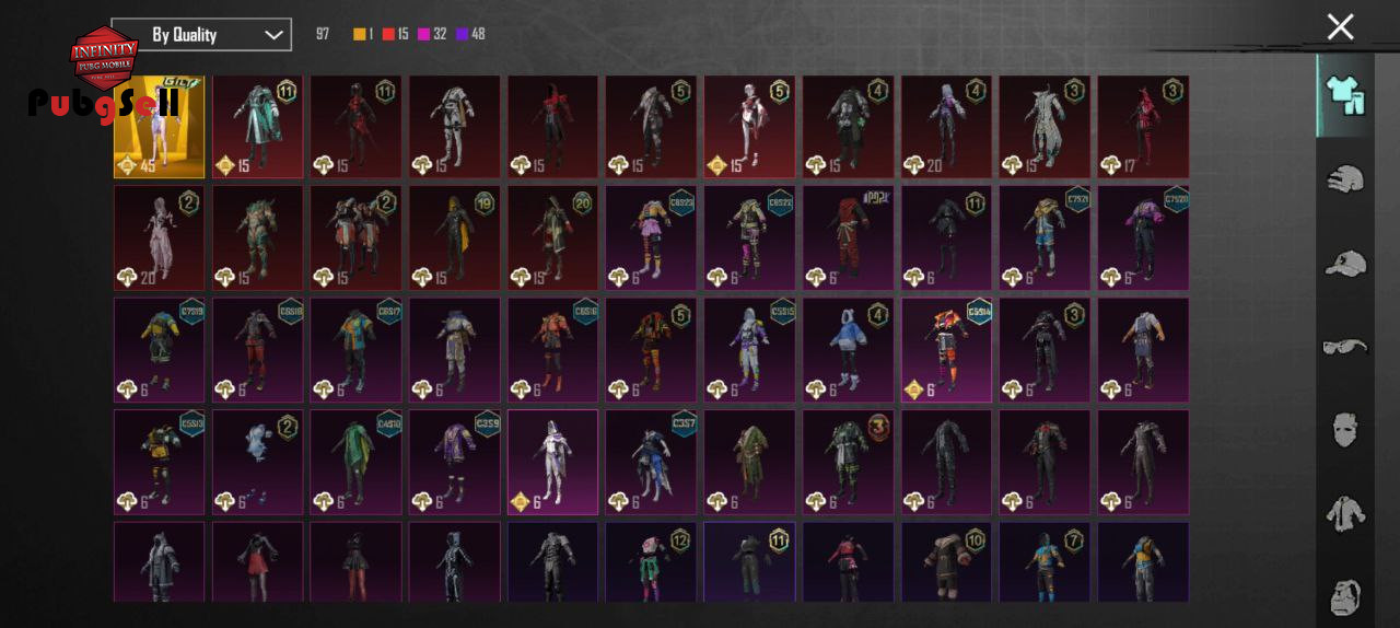 اکانت دارای ست های متیک و دنس های متیک امفور یخی کیل امفور جنگل و 8 گان لولی دیگر ست اولتیمت و 4 سیزن الایت و اکانت قدیمه و وسایل های مثل هلمت یخی و بک بک جوکر رو داره