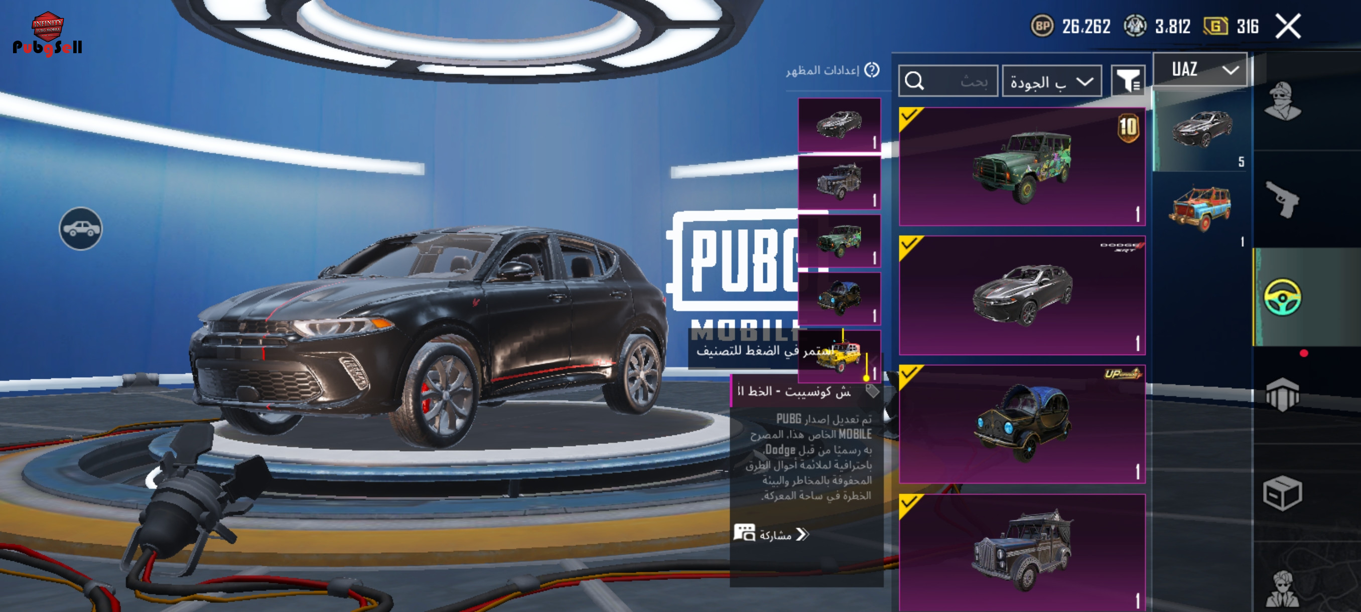 اکانت دارای ماشین لامبورگینی مشکی جیپ و امفور پلنگی ابی لول یک و امفور یخی لول 7 و یو ام پی غیر از ارپی کلسمسچ ام 24کل مسج بیکیسی کلمسج و شادگندکلمسج بیستون و ای کی لول یک و ست لباس خفن متیک الغازی و یخی و دارای هلمت چینی متیک و کیف فرعون متیک دارای لباس تی دی ام متیک و لجندری و 7عدد ماشین جیپ و پیکان لول سه و دو عدد پیکان سیزون قدیم و دو بار کانکر شده در فیدیو مشخصه چیکن نزدیک یک ملیون هیت. الان 999k و بقیه مشخصات در فیدیو هست پت گرگ و پلنگ