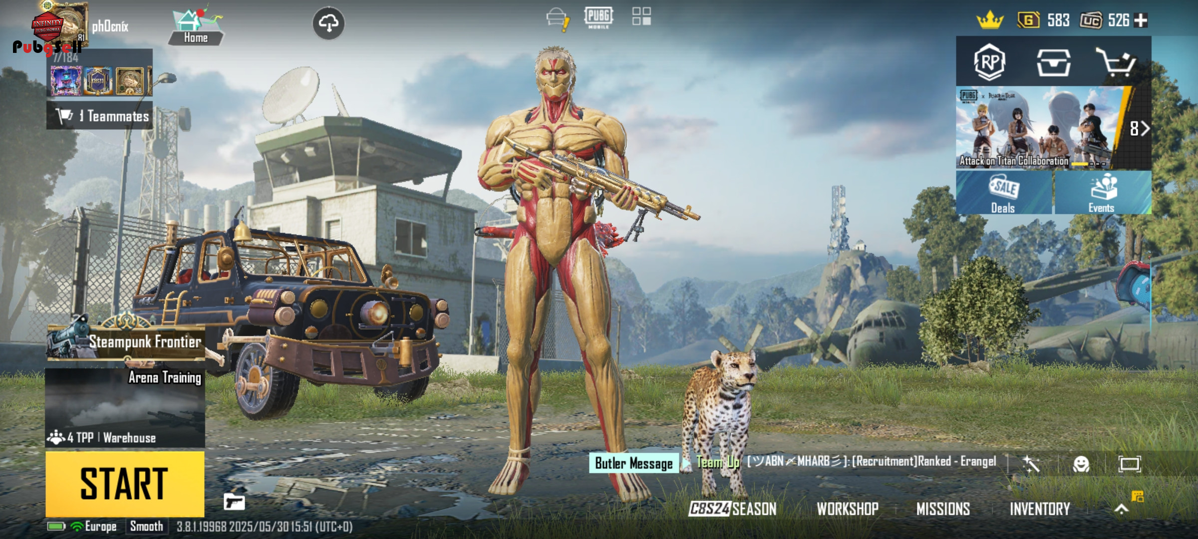 : دارای لباس اپگریدی لول 2 . ماشین جیپ و داسیا و موتور اپگریدی. دارای اسکین لباس و اسحله زیاد می باشد 🔮آیتم های مهم: لباس اپگریدی و m4 فرعون و پنج تا پت و بیشتر شخصیت ها رو داره ♠️ گان های اپگریدی غیر آرپی:M4 کل مسج فرعون M24 edge lvl 4 کل مسج Akm lvl 4کل مسج Akm lvl 3 Amr lvl 1 تبر گودزیلا لول 2 Kar98 lvl 2 Amr lvl 4 کل مسج همراه لباس اپگریدی Mg 3 lvl 1 M762 lvl 4 کل مسج Scar-L lvl 1 M24 lvl 1 فرعون Groza lvl 4 کل مسج Dp lvl 1 ♣️ گان های اپگریدی داخل آرپی: چاقو لول یک Uzi lvl 1 Slr lvl 1 Pp 19 lvl 1 Spy family lvl 1 Thompson lvl 1 Pan lvl 1 Dbs lvl 1 Crossbow lvl 1 Ump کل مسج ست های اپگریدی: 1 ماشین های کارتی و اپگریدی: 6 پرایز پس چند فصل فعال شده این فصل هم فعاله