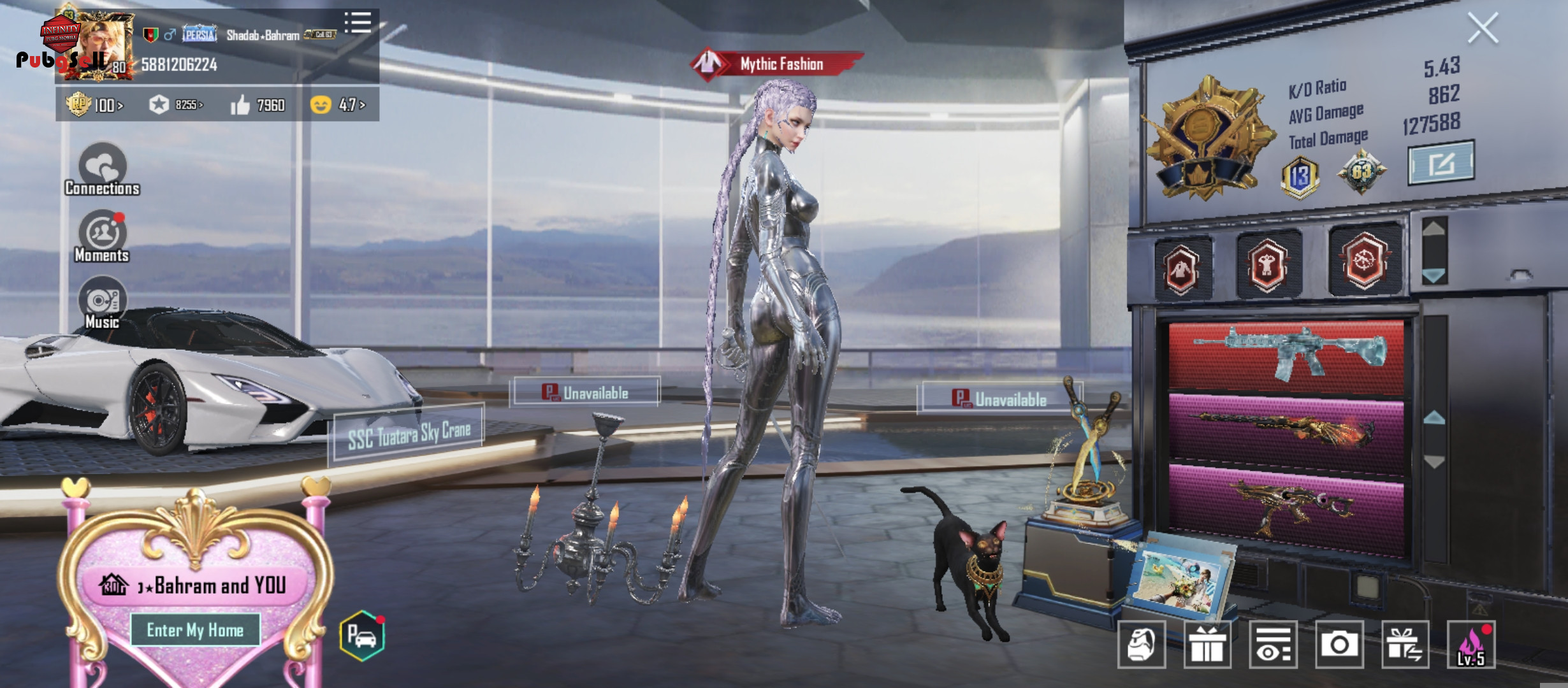 محبوبیت یا چیکن:(1،55M)🟢لینکهای اکانت: just X Glacier - M416 (Lv. MAX) Sealed nether -M416 (LV. 2) THE SEVEN seas -M24 (LV.3) Candy Cane -thompson SMG (LV.1) MK14 (LV.1) Lilac finesse -thompson SMG (LV.2) 8 Bit Unicorn - M762(LV.1) Glacier Hammer - UZI (Lv. 4) Spirit Sentry - UZI (Lv. 2) Ethereal Emblem - UZI (Lv. 4) Onyx Blizzard - AMR (Lv. 1) Tundra Knight Dagger Knife(Lv. Max) Seadream Melody - SLR (Lv. 2) Data Kitten - DP-28 (Lv. 2) Bloodbane parasite -DP28 (LV. 4) Nightscape Gladiator - PP-19 Bizon (Lv.max) QBZ (LV.1) Spectral byte -PP-19 Bizon(LV.2) Faerie Luster - Pan (Lv. Max) Panthera Prime - DBS (Lv. Max) Circus of Screams - Crossbow (Lv. 2) Soaring Dragon - MG3 (Lv. 4) Void soaleater UMP 45 (LV. 4) Gilded Reaper - Vector (Lv. 4) Kitty Kadence - Kar 98 (LV. Max) Atomic trigger - S12K (LV. 3) Thornrose dawn - M16 A4 (LV. Max) Patchmetal Bunny MK47 (LV. Max) Golden Talon -P90 (LV. 2) Tomahawk (LV. Max) NS 2000 (LV. Max) صد تیر (LV. 1) اسکالر (MAX) 7 Mythic Emblem Forge Sacred scarab Glider Nightscape ironwing Glider Foxy Flare Hoverboard Glider Voyage Glider Pharaoh's scarab parachute Golden sands Buggy (LV. 2) Cosmic jump Motorcycle (LV. 1) SSC Tuatara SKY car Cart Titan Dacia Duneshine Dacia (LV. 2) Mouse Trap UAZ Steamclad Racer UAZ (LV. 1) Spectral Byte Set Mercury soldier set (New X suit 2 star with AWM (LV 4 Anukhra X-Suit ( 3- Star) 100 Mythic Fashion Achievement 8050 Collection 62 Home level 30 Pets: Spirit Kitty and white Dog Popularity - 1.55 M Characters: Victoria- Riley - Laith with 380 character card