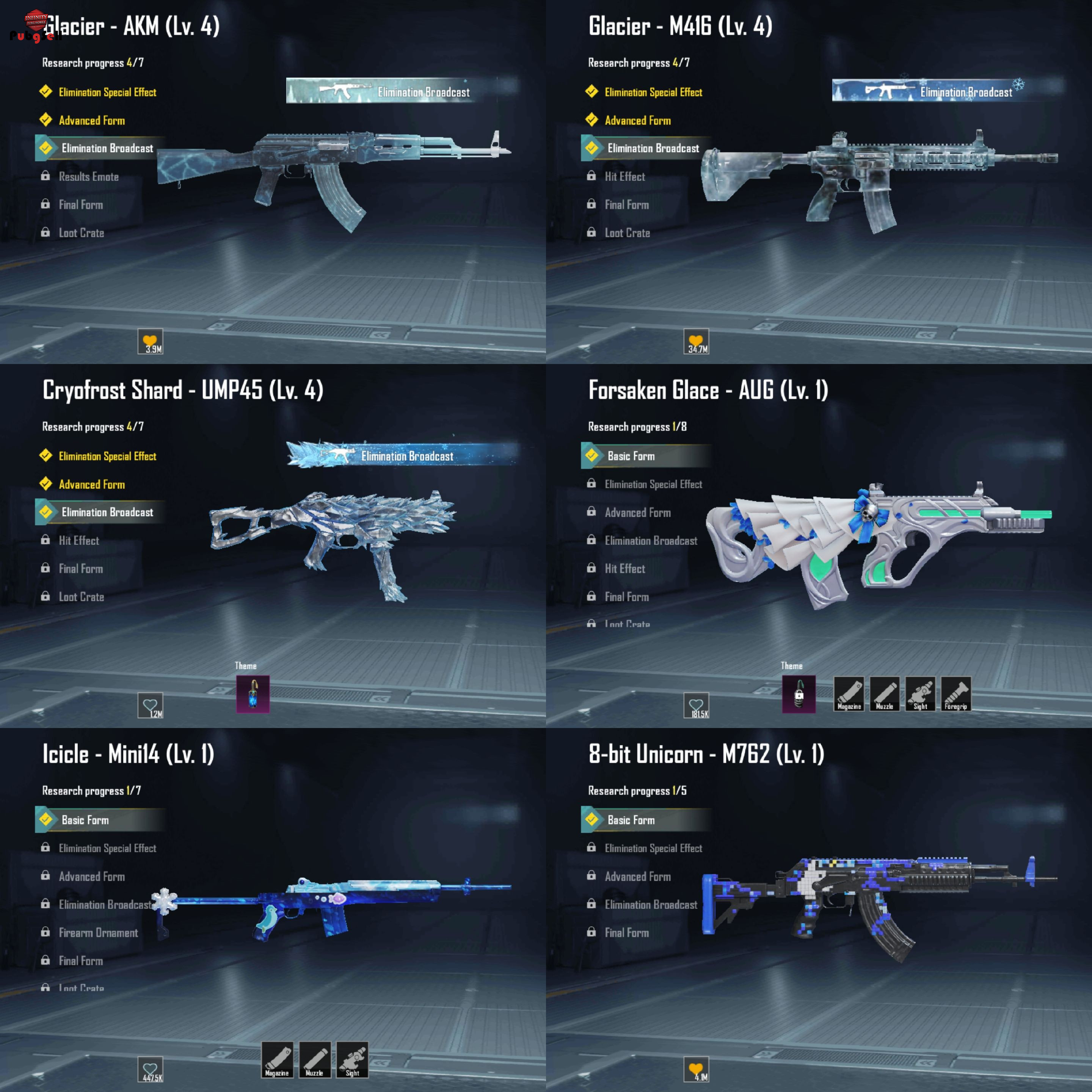 glacier AKM لول 4 cryofrost shard UMP45 لول 4 glacier M416 لول 4 field commander AWM لول 1 8-bit unicorn M762 لول 1 aurora pulseM16A4 لول 1 pharaoh's might M24 لول 1 lcicle Mini14 لول 1 snowcapped berg SKS لول 1 soaring dragon MG3 لول 1 circus of screams Crossbow لول 1 forsaken glace AUG لول 1 panthera prime DBS لول 1 هلمت یخی لباس یخی لباس specter soldier set دارای یک جم متیک فورج دارای 7 دنس متیک غیر آرپی الایت پس سیزن های A3 و A4 و A14 هرسه سیزن الایت مکس شده درحال حاضر اکانت سه تا سیزن الایت مکس شده و بقیه سیزن هارو الایت نبوده دارای 22 متیک 668 کارت کاراکتر داره کاراکتر سارا همه لباساشو داره فیس سیزن 4 70 کا چیکن داره دارای یک کارت ایدی 2 مینی متریال چتر سیلوانوس دارد مولوتوف یخی کیل مسیج دارای نید آپگریدی دور قاب winter highness با 5 کا یوسی گرفته شده دارای تایتل pacifist دارای تایتل on a mission 8 سیزن ایس دامینیتور شده 243 اسکین لجندری 422 اسکین اپیک لباس آپگریدی ندارد اکانت لول 79 است Evo لول 63 است قدمت اکانت 5 سال و دارای کلی اسکین و لباس هستش
