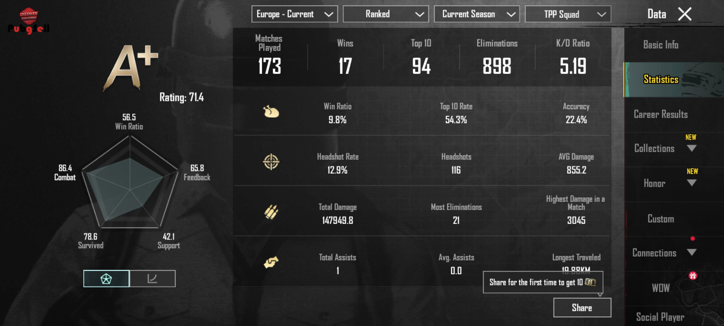 سلام به همه ای دوستان مهربان…. 🎮 اکانت پابجی موبایل برای فروش 🎮 🔹 لول: 61 🔹 رتبه: Ace Master 🔹 مدت بازی: 2 سال 🔹 745 UC موجود 🔹 KD: 5.19 (این سیزن) 🔹 اکانت سالم، بدون بن ✅ 💰 قیمت فوری: 580,000 تومن (مشتری واقعی تخفیف جزئی داده میشه). برای اطلاعات بیشتر و خرید پیام بدید 📩