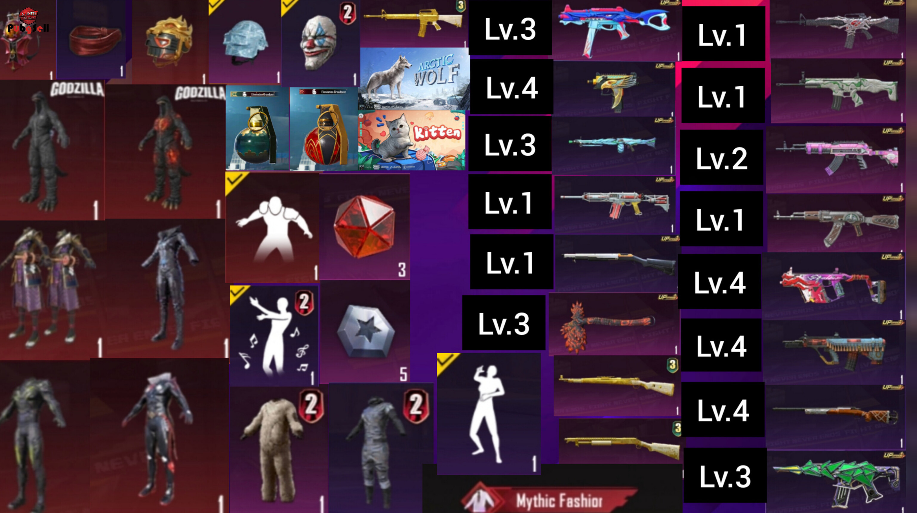 تو فیلم معلومه همه چیز 30 تا گان آپگرید که 9 تاشون کیل مسیجن 90 تا متیک و تایتل متیک فشن کلی لباس خفن ، لباس اینویدر لباس جوکر قدیمی لباس گودزیلا ووو 22 سیزن الایت کلی دنس خفن کلی اسکین قیمت واقعا مناسبه و به پولش نیاز دارم وگرنه نمیفروختمش