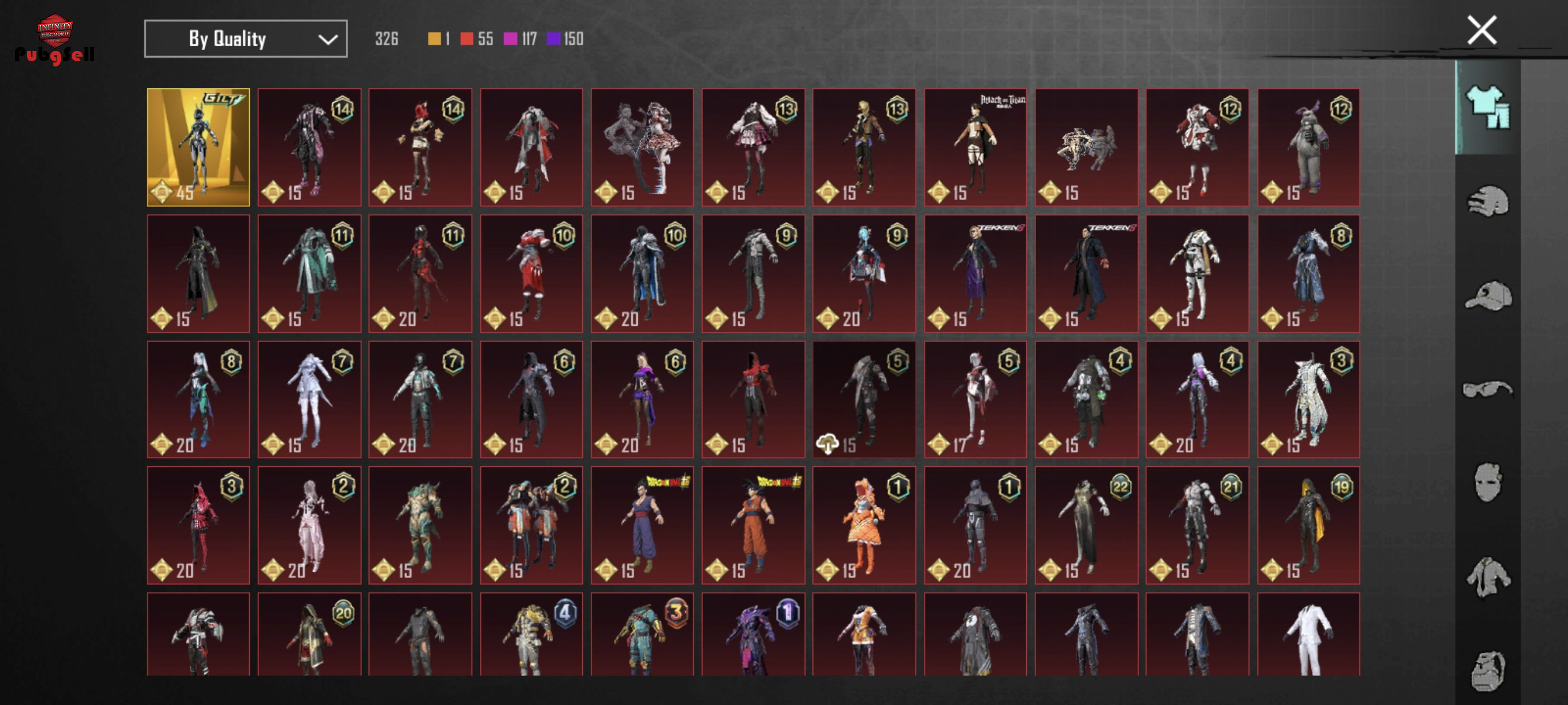 اکانت با ریجن متفاوت و قدیمی ، خوش شانس سر هر ایونت جعبه یا هر چیزی یک متیک درآورده ، دو تا اولتیمیت داره یکی ست خرگوش رباتی ، و تاج فرشته ، لباس متیک فورج 6 تا داره که 3 تاش تو جعبه درومده، 30 اسلحه آپگریدی داره که امفور مومیایی لول 4 کیل مسیج ، ای دبل زنبوری کیل مسیج لول 4 ، ام 24 فرعون لول 4 ، پیستول مکس ، ام 24 دزدان دریای لول 3 ، تامسون مکس ، ام جی ال مکس ، گروزا لول 4 و بقیه لول 1 هستند ، دوج 2 نفره آتشین رو داره ، و اسکسن ماشین آپگریدی 1 متور ، دو تا پیکان ، 1 تراک ، 1 جیپ ، 1 باگی و 5 کاراکتر داره ویکتور ، سارا ، آنا ، riely، لورنزو، که همه مکس لول هستند ، 7 تا متیک فورج و 22 تا نم مینیش رو داره، 208 تا لاکی کوین هم داره ، پت پلنگ هم داره و لباس شیر ، لول خونه هم 30 هستش ، فیس سزن 4 داره و گیس خرگوشی و موی سر سیزن 4 ، اسکین لباس سیزن های قدیمی زیاد داره ، 3 مینی متریال داره ، لول کالکشن هم بین 64 و 63 هستش که به 64 نزدیک تره ، قاپ 1 سالگی پابجی رو هم داره با کلی قاپ جفن دیگه ، و لول اچیومنت 8600 هستش و کلی تایتل جدید و قدیمی داره