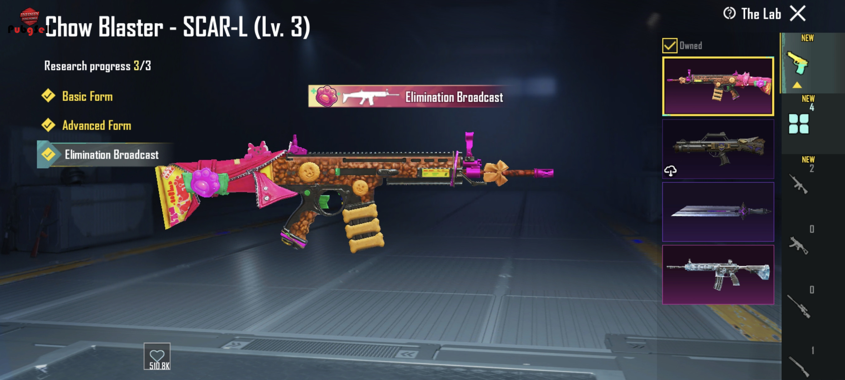ام فور یخی لول 1 اسکارل کیل 136 تا گان جعبه طلایی بالای 50 کا چیکن داره 4 تا گان اپگریدی هم داره 9 تا متیک داره 2 تا جم متیک فورج 1 و 23 تا شکسته 1 متریال 7 تا مینی