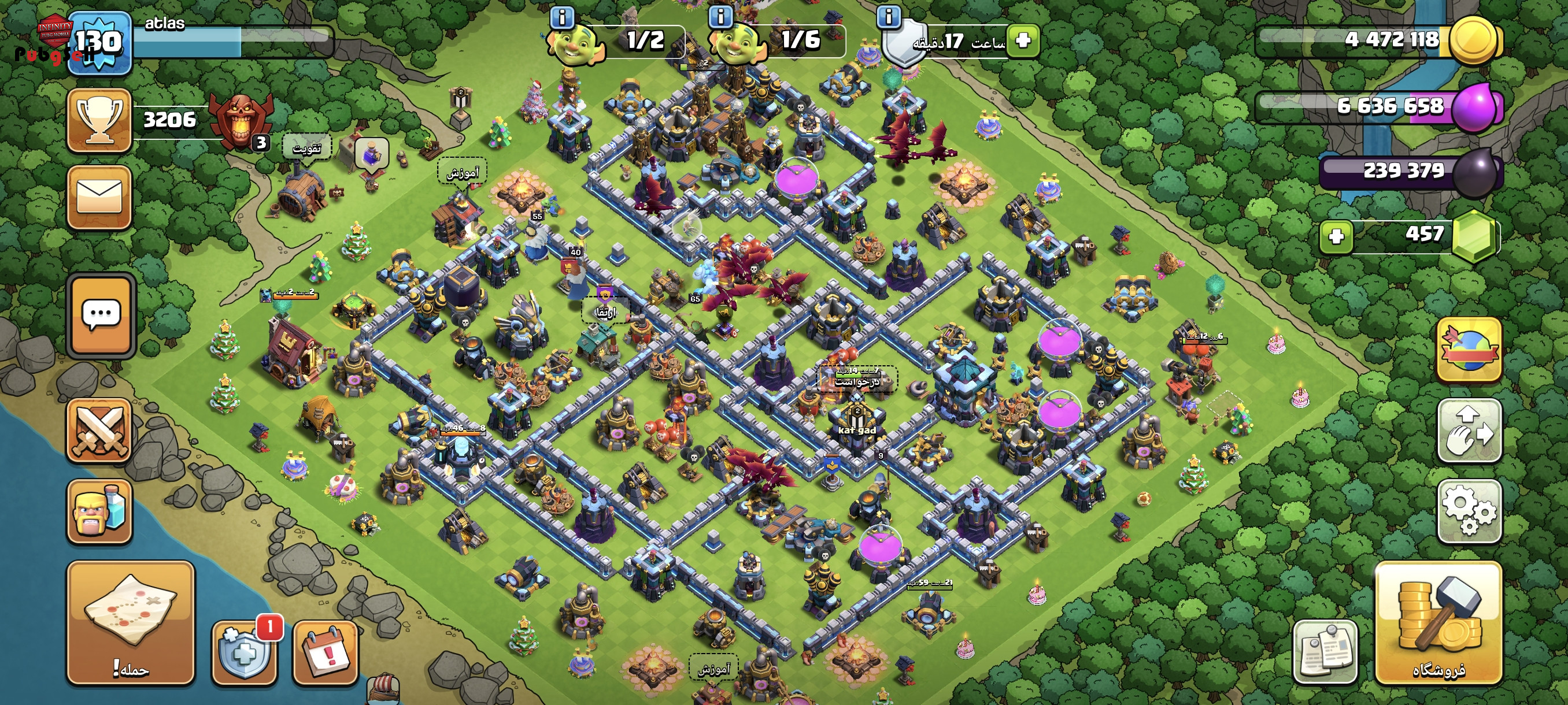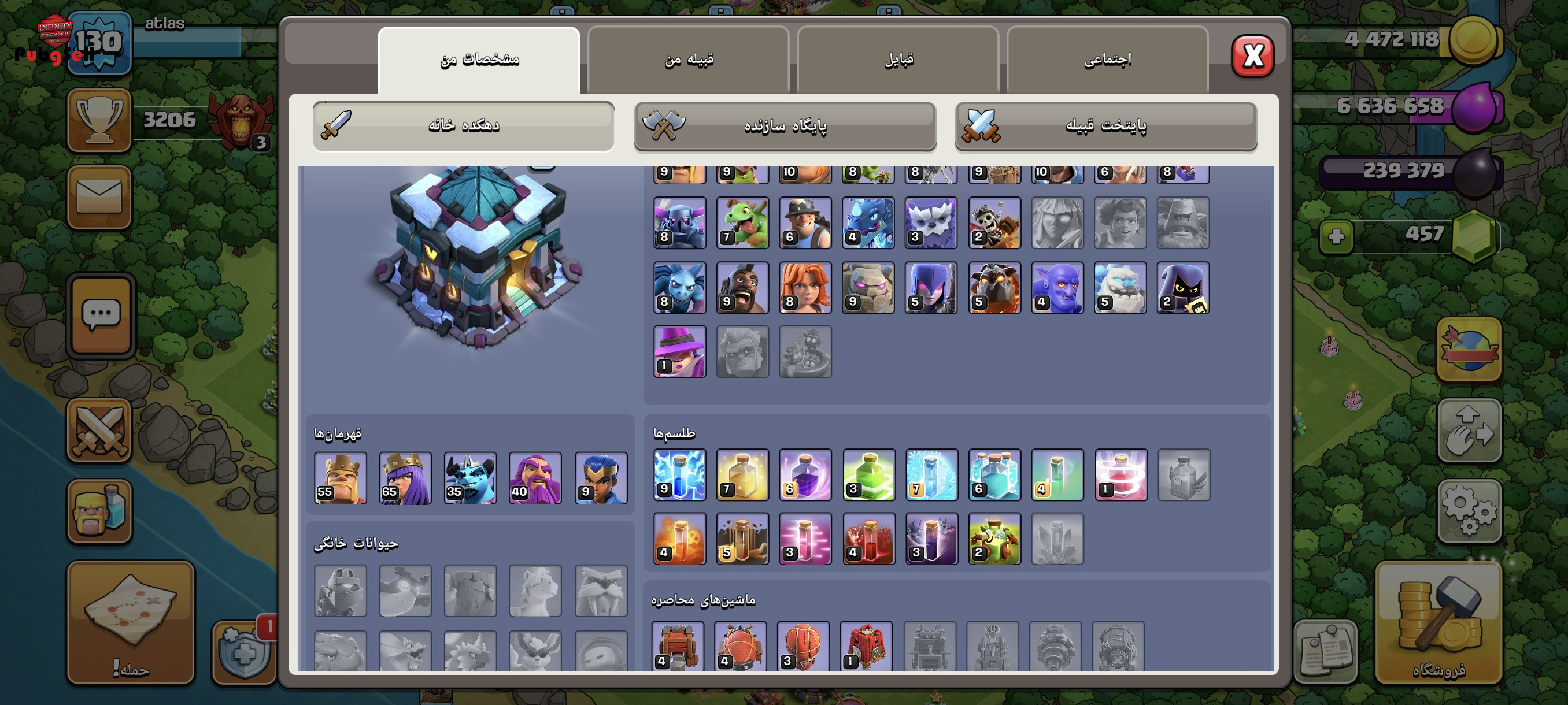 کلش تاون 13 کم مونده به مکس اماده لول دادن به 14 هستش 425تا جم داره 5عدد کارگر جلد بربر کویین واردن و رویال چمپیون.