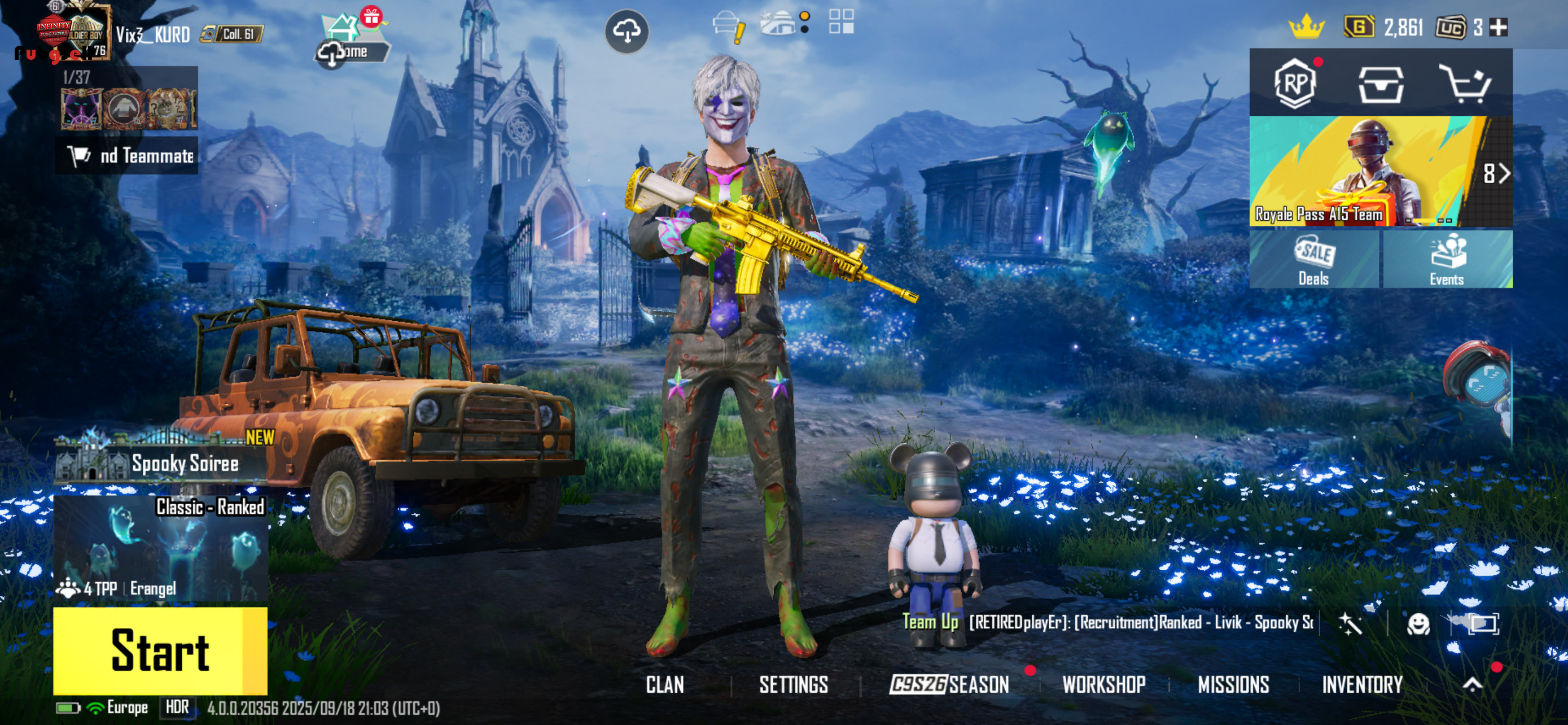 فقط لینک 3 -اکانت دارای 7مینی مت 2جم کامل و 17تا شکسته هست کالکشن 61 -ست های غیر ارپی زیادی داره ماسک جوکر اصلی رو داره امفور طلایو داره ایتم و کیف فرعون تا دلت بخواد هست -اندی ،سارا ،انا باز هستند -پت عروسک پابجی و پت گربه رو دار --------- 18 تا اسلحه ارتقای چندتای کیل هستند 8-bit Unicorn - M762 (Lv. 4) Operation Tomorrow - SCAR-L (Lv. 4) Soaring Dragon - MG3 (Lv. 4) Cadence Maestro - M24 (Lv. 4) Marine Evolution - UMP45 (Lv. 3) Tundra Knight Dagger (Lv. 3) Drakonbane Remnant - Machete (Lv. 2) Codebreaker - AKM (Lv. 1) Bunny Munchkin- AKM (Lv. 1) Circus of Screams - Crossbow (Lv. 1) Faerie Luster - Pan (Lv. 1) Panthera Prime - DBS (Lv. 1) Lilac Finesse - Thompson SMG (Lv. 1) Nightscape Gladiator - PP-19 Bizon (Lv. 1) Seadream Melody - SLR (Lv. 1) Spirit Sentry - UZI (Lv. 1) Thornrose Dawn - MIGA4 (Lv. 1) Patchmetal Bunny - Mk47 (Lv. 1)
