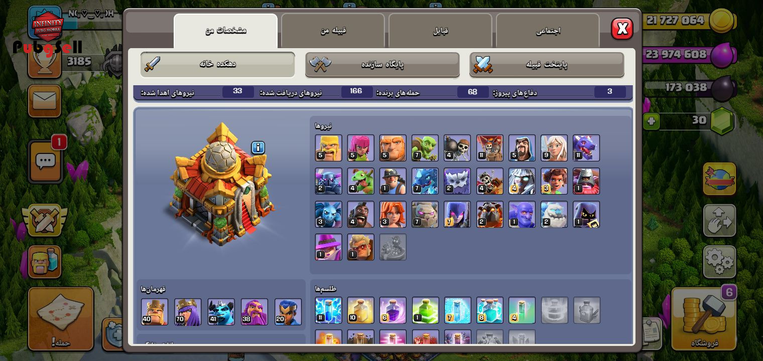 سلام دوستان اکانت کلش آف کلنز یا لول 141 تانی 16 دارای توپ و آینه جادوی گلوله آتشی و چکمه برقی فول تقویت شده میباشد خدای مفت گذاشتم پول لازم استم مبارک خریدار..