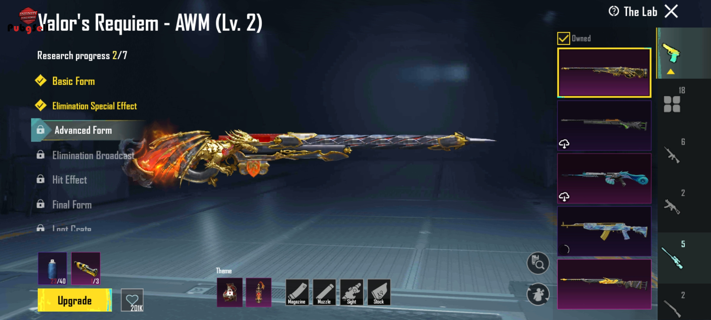 M4 MOMIAII LVL 6 + SCOPE 3 + NAID ,MOLI AWM LVL 2 M16 BONES LVL 1 FULL ATCHMANT PP BIZON KILL SLR KILL DBS KILL SKS LVL 3 PHARAOH M24 LVL 1+ SCOPE 6 M24 SHARK LVL 1 M7 UNIVERSE LVL 1 + SCOPE 4,1 M249 LVL 1 UZI LVL 1 S12K LVL 1 SCAR L LVL 1 M16 LVL 1 M7 UNICORN LVL 2 Hovercraft LVL 1 متریال 1 5 مینی متریال 1متیک فورج 369یوسی