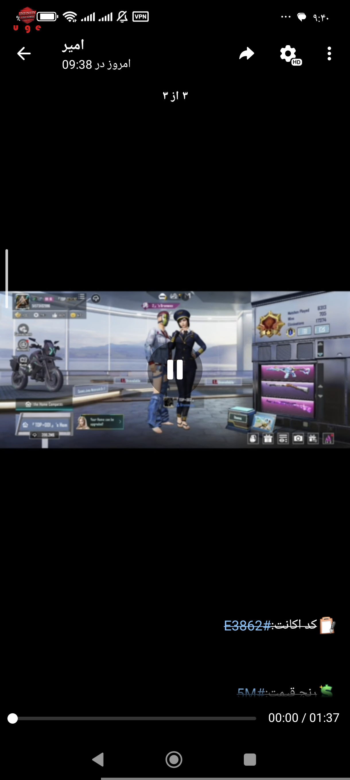 🔝لول اکانت :75 ✔️سیزن های الایت :از M9تاA14با چند تا میس ✔️ سیزن های الایت مکس :همه 🏆سیزن های کانک شده :ندارد 🐥مقدار چیکن :1M 🧷لینک های اکانت:لینک سه 📌توضیحات:اکانت اسکین دار کالکشن 59 فیس سیزن 4 دو نمونه مو سیزن 4 ست جوکر Invader Set موتور آپگریدی 76متیک یک سکه کامل متیک فورج آلایت سیزن بعد پیش خریداری کردم زیاد تعریف نمیکنم همش داخل ویدیو مشخصه ❗️آیتم های مهم : 25گان Tidal Embrace - M416 (Lv. 4)کیل Killer Tune - M24 (Lv. 4)کیل Twilight Hunt - S1897 (Lv. 4)کیل Burning Godzilla Tomahawk (Lv. 3)کیل Tundra Knight Dagger (Lv. 3)کیل Spirit Sentry - UZI (Lv. 3)کیل Kitty Kadence - Kar98K (Lv. 3)کیل Lilac Finesse - Thompson SMG (Lv. 3)کیل Marine Evolution - UMP45 (Lv. 3)کیل 8-bit Unicorn - M762 (Lv. 3) Soaring Dragon - MG3 (Lv. 4)کیل Skeletal Core - M16A4 (Lv. 1) Drop the Bass - SCAR-L (Lv. 1)