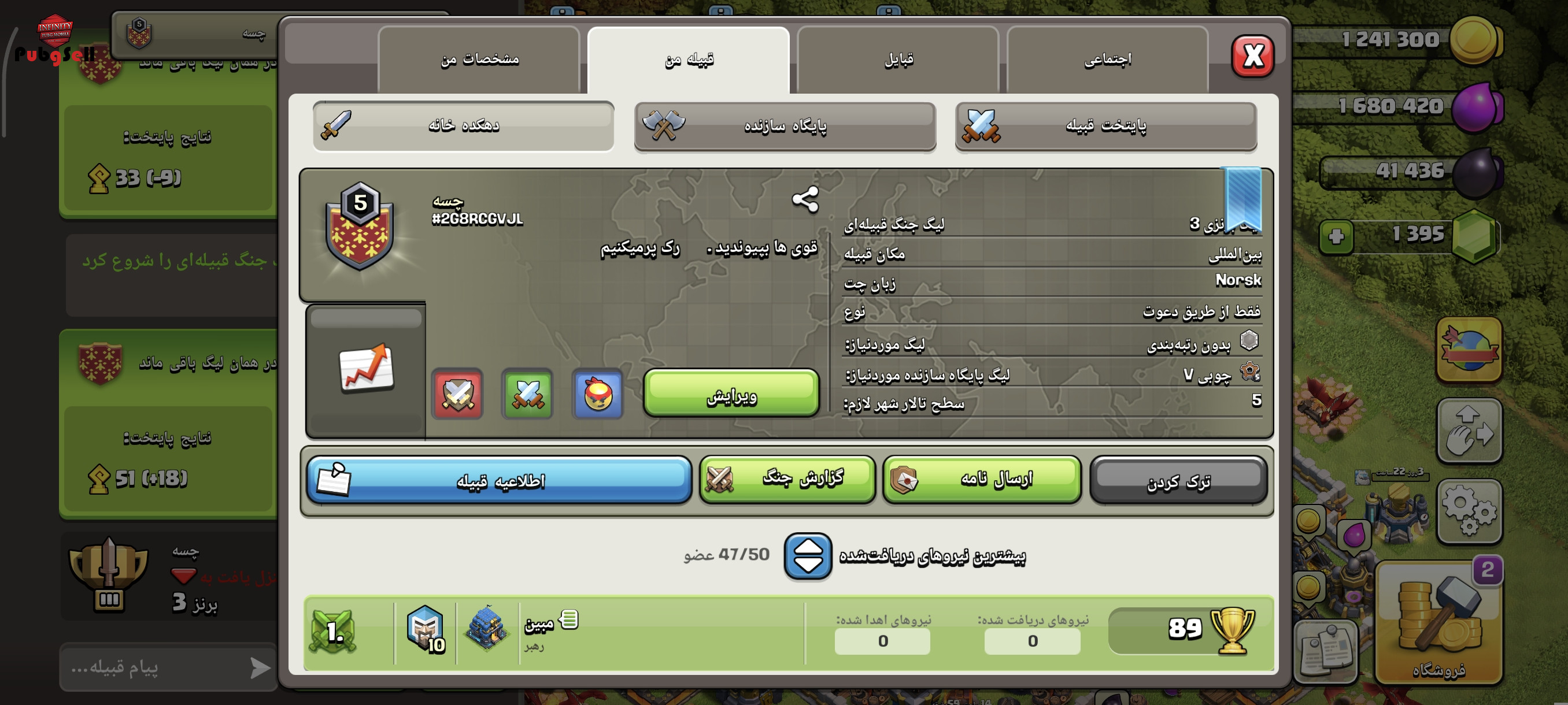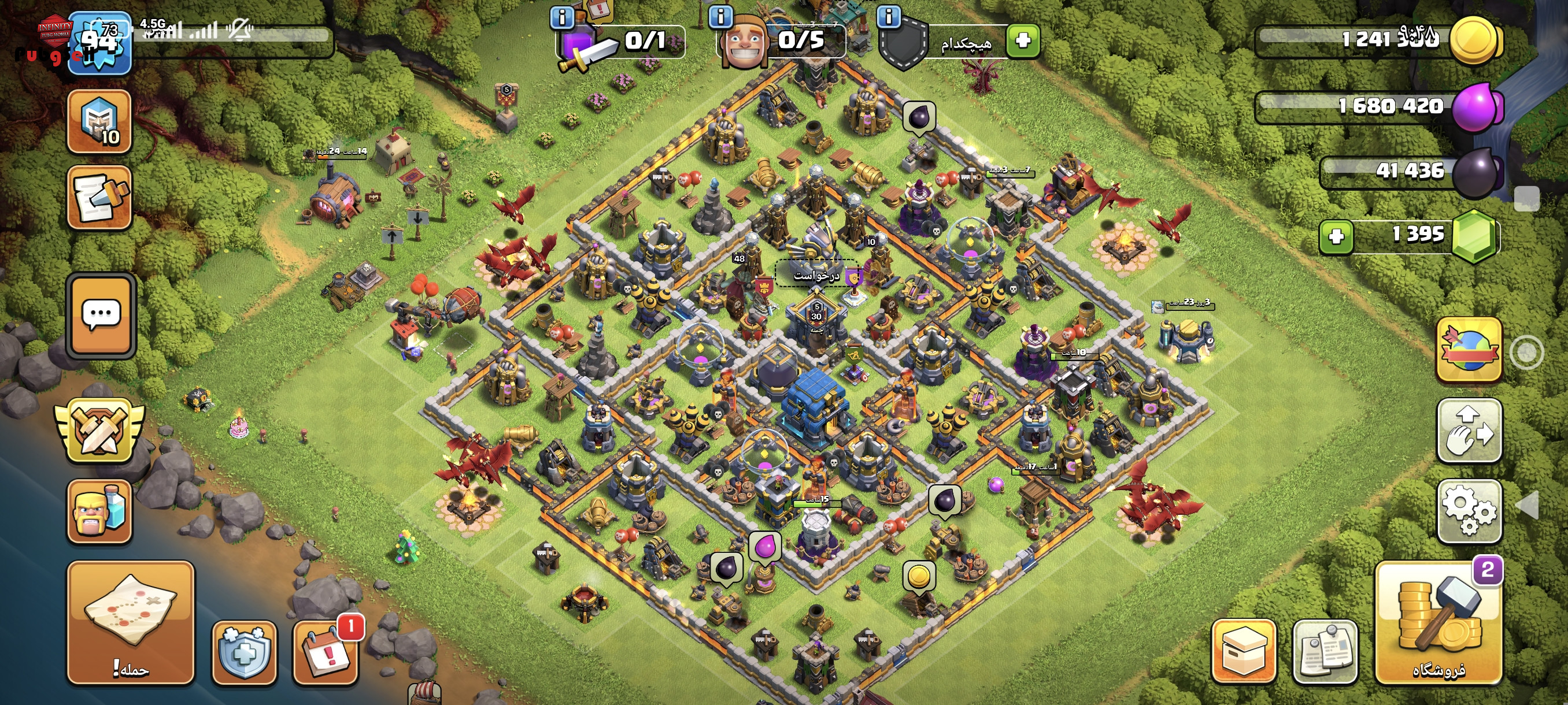 3 تا لباس قهرمان دارد جم 1400 تا است توان 12 است و لول 94 و یک قلن دارد و قلم 5 است و 47 تا آدم دارد