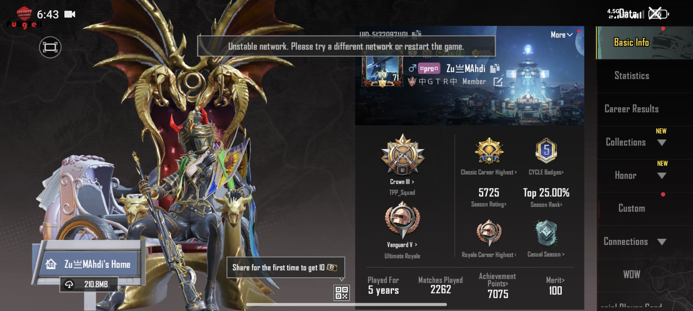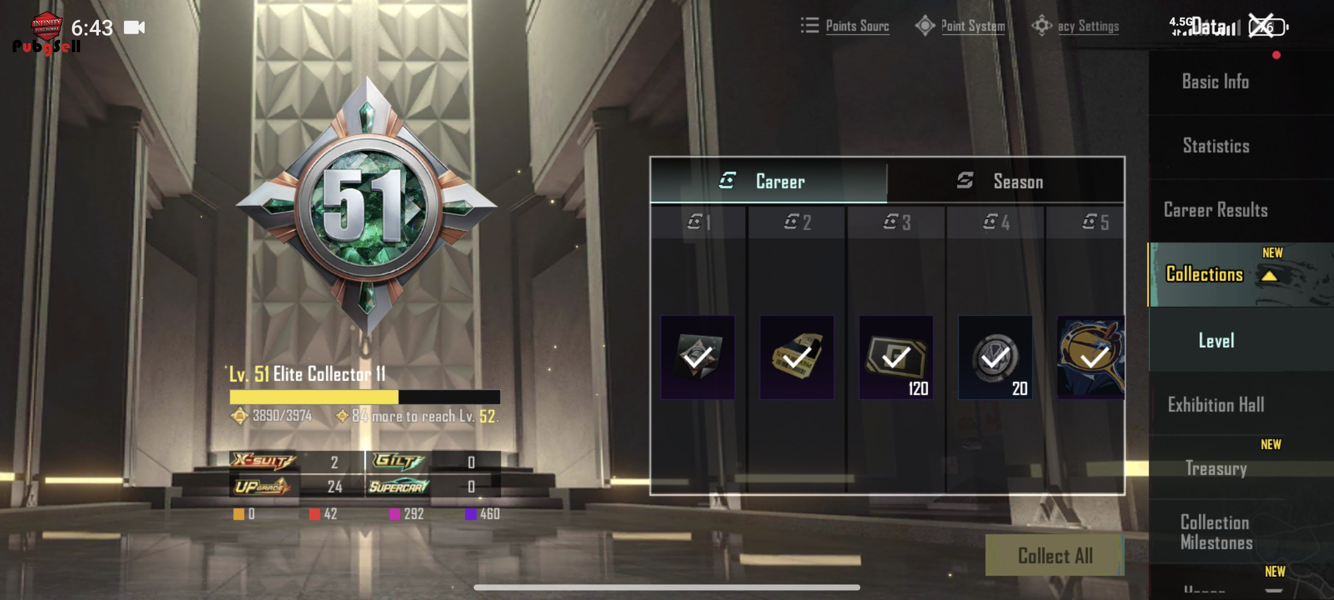 اکانت خوبیه هر بونس پس یا پرایر پسی که طی سیزن A10 وتا کنون گرفته پنچ بار بونس پس 800 یوسی خریداری شده تعداد متیک های اکانت 42 تا هست کاراکتر سارا و ویکتور یه کارکتر دیگه هم داره 24 تا گان لولی داره که 5 تاش کیل مسیج گلایدر اژدها همراه ایکسوت و ایدبلشم داره و خود ایکسوت لول دو هست و بعد ایکسوت فرعون هم داره لول یک هست 5 تا مینی متریال داره 80 جعبه پرمیوم داره تقریبا میشه گفت دوتا متیک فورج داره 150 تا لاکی کوین داره در ویدیو همه چی مشخص تره 70 روز پرایم داره ایدبل اژدها با اتچمنت هاشو داره در ویدیو مشخصه