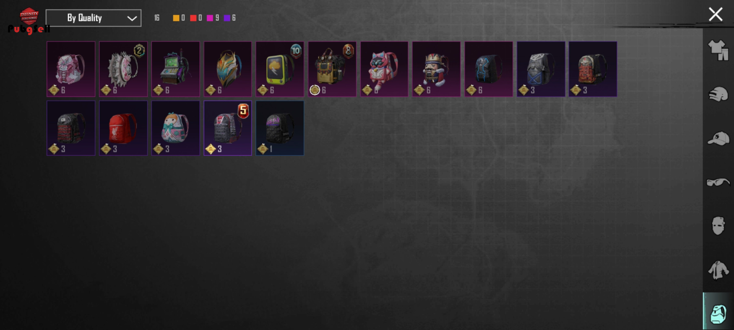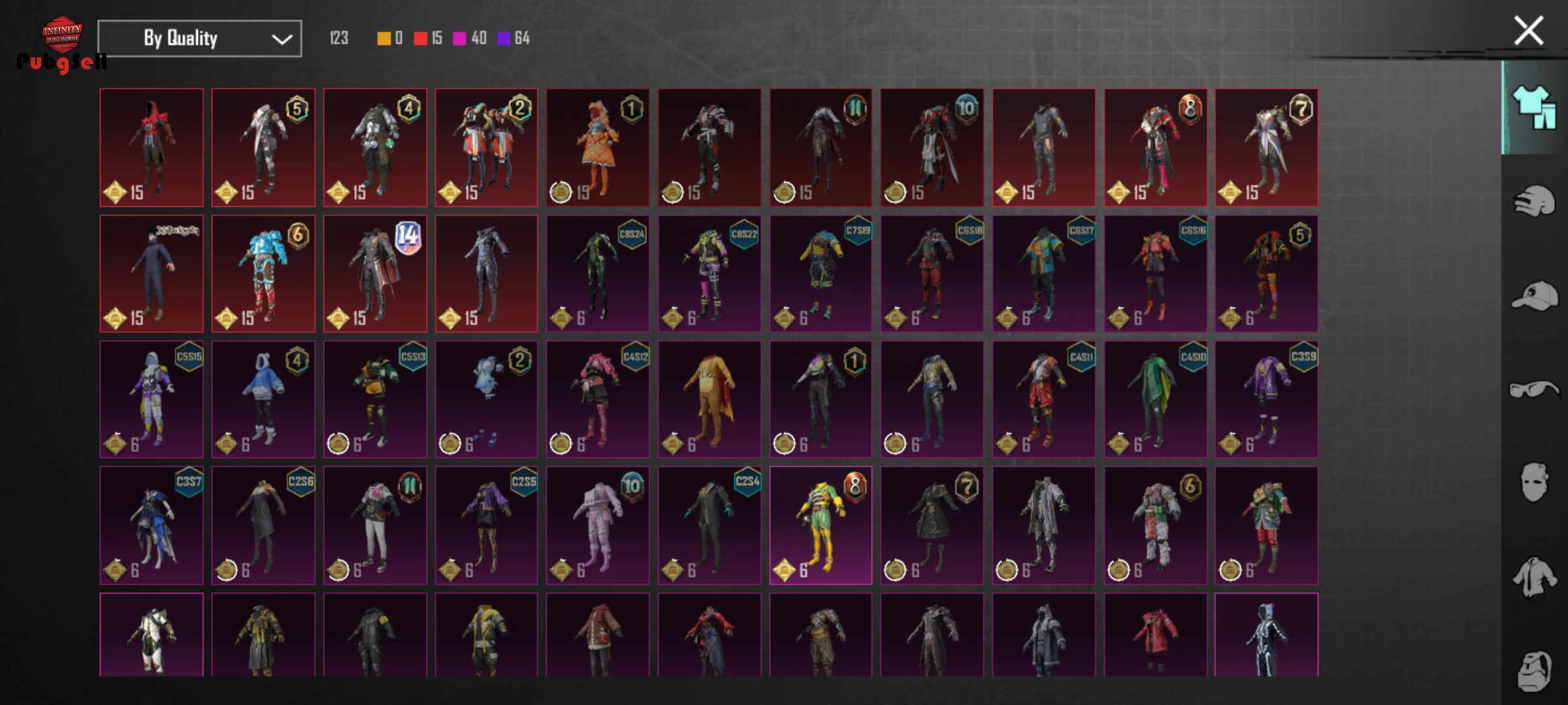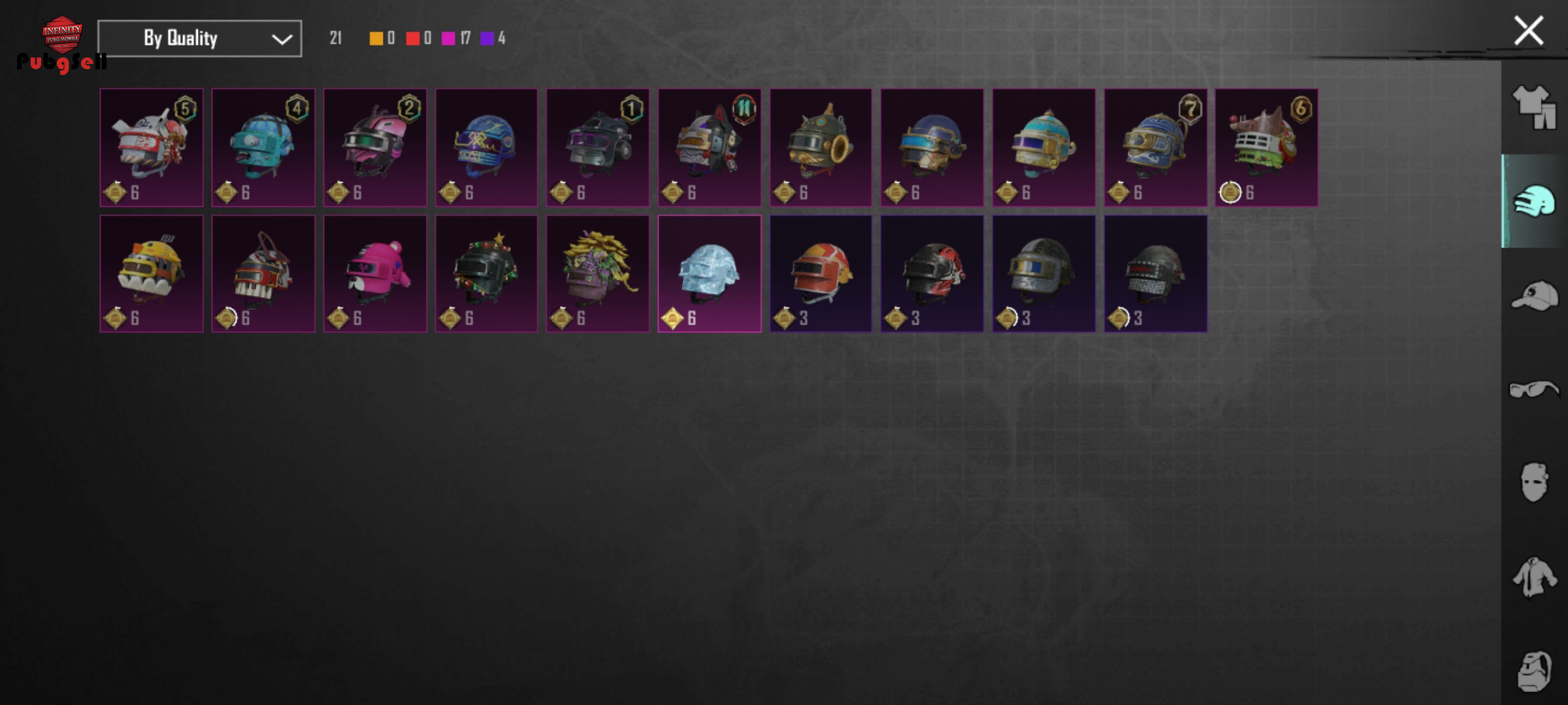چندتا لباس متیک آرپی هلمت یخی کلاه پاندا و ماسک سیزن 2 و چندتا کلاه سیزن 3 یو ام پی آرپی دی بی اس آرپی پن و قمه آرپی شاتگان طلایی سیزن 2