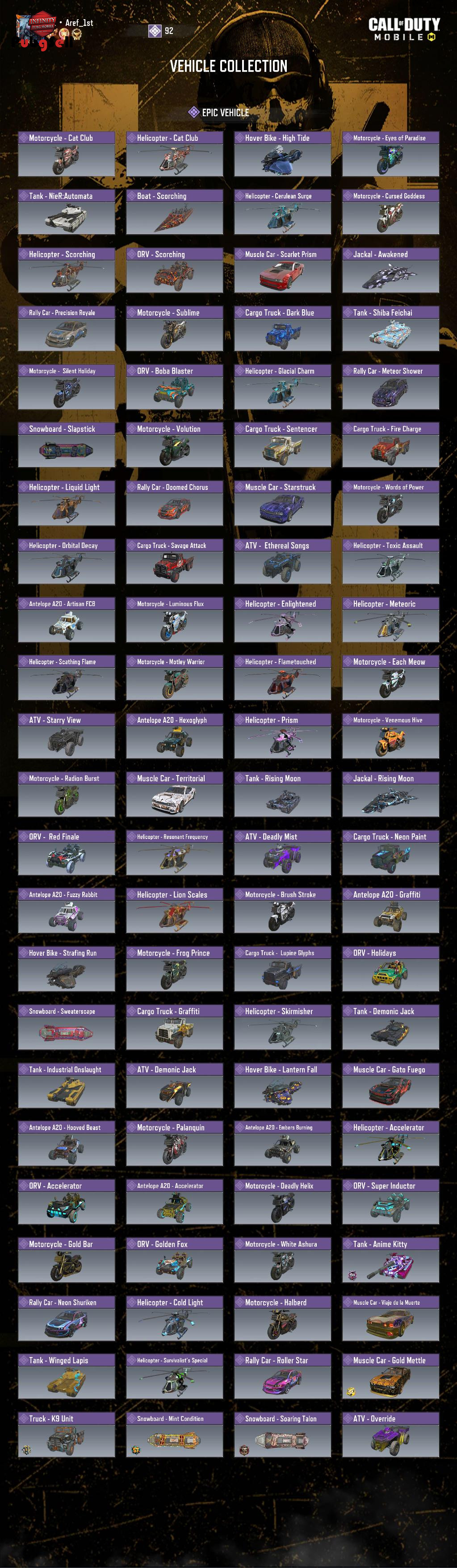 اکانت پر و است اسکین گردون خیلی زیاد داره برای هر گردونه هم تقریبا توی بازی یکی دو بار به بالا اسپین زدم M13 متیک هم از گردونه چهار تا مونده خلاصه اکانت پر ملاتی است