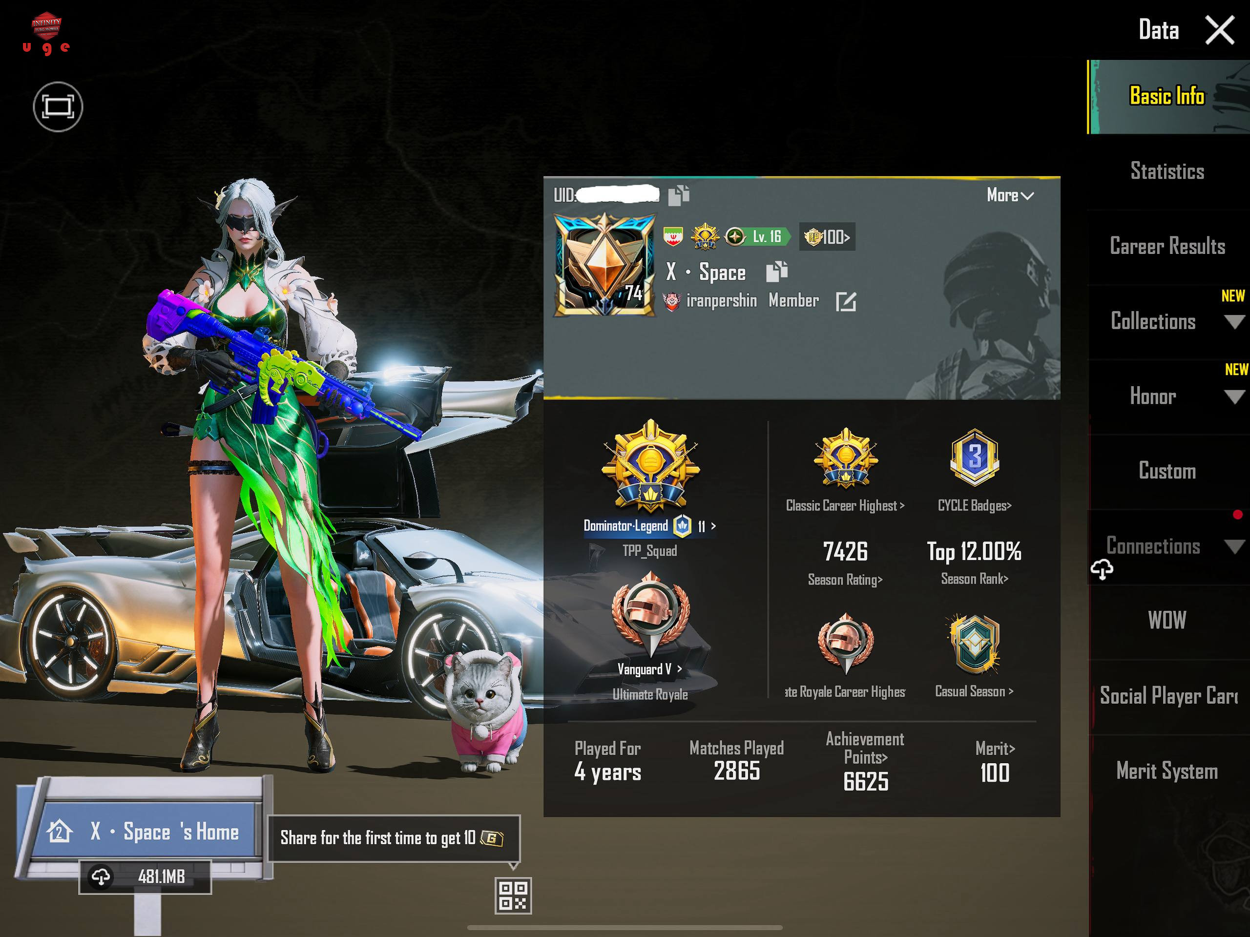 ♻️توضیحات: 🎊 - 100 متریال زرد لباس آپگریدی 🎊 - 11 سنگ لباس آپگریدی 🎊 - 2 متریال کامل گان 🎊 - 15 هزار کارت AG 🎊 - 800 یوسی 🙍♀️ - فیس سیزن 4 🔫 Guns ( 15 ) : 🎯 Lizard Roar - M416 ( Lv. 4 ) 🎯 Stray Rebellion - M762 ( jocker ) ( Lv. 4 ) 🎯 Folly's Clasp - SCAR-L ( Lv. 4 ) 🎯 Icecle Spike - ACE32 ( Lv. 4 ) 🎯 The Seven Seas - M24 ( Lv. 4 ) 🎯 Forsaken Glace - AUG ( Lv. 1 ) 🎯 Valor's Requiem - AWM ( Lv. 1 ) 🎯 Mauve Avenger - AWM ( Lv. 1 ) + More Rp Guns 👘 X-Suit ( 5 ) : Fiore ⭐⭐⭐⭐( kill Message ) Poseidon ⭐⭐ + ورود به لابی Silvanus ⭐ Dravion ⭐ Avalanche ⭐ 🚘 Sport Cars ( 2 ) : ⚪ Pagani White ( kill ) ⚫ Pagani Black ( kill ) 🐾 Pets ( 2 ) : 🐈 Cat 🐺 Wolf --------------- لینک اکانت قابل تعویض به جیمیل شما به صورت تک لینک 3 بدون دردسر