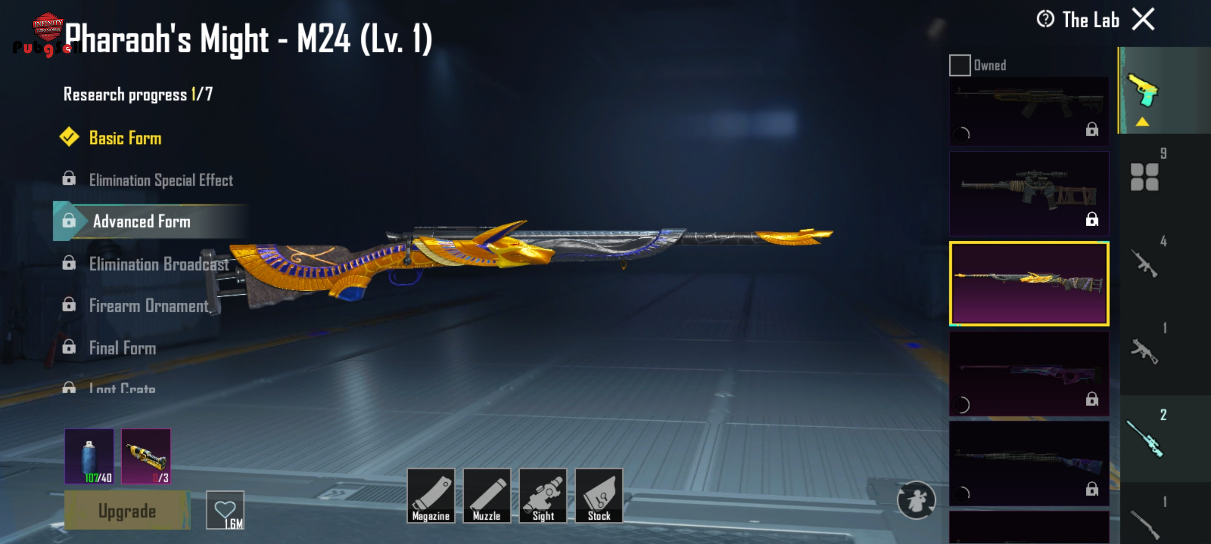 با سلام اکانت قدیمیه 5 ساله از سیزن s16 بازی میکنم گان های آپگریدی بیش از 10 تا داره m24 فرعون m700,ump و ...هلمت سختی پاتدا شخصیت سارا و آنا رو داره 3 تا متیگ فورج داره