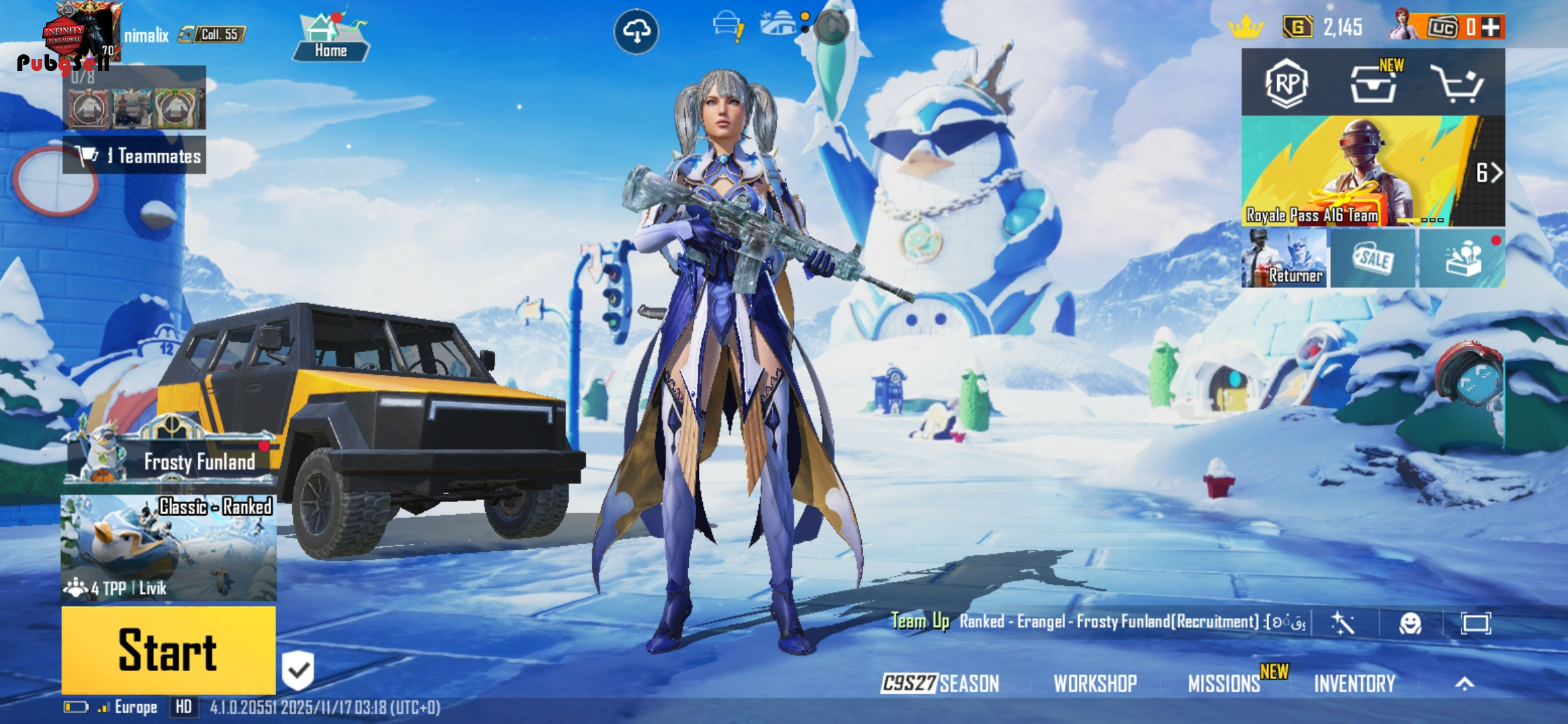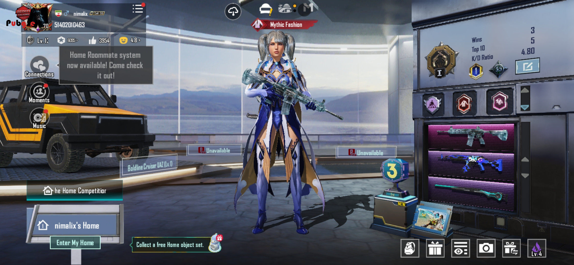اینجا چیزاری که مهمه رو میگم. فیس سیزن 4 و همراه مو دارد ✅️. 10 تا گان داره که 2 تاش کیل مسیجه✅️. اچیومنت 6k , هزار تا دارد✅️. چیکن 700k , دارد✅️. متیک فشن خیلی وقته داره
