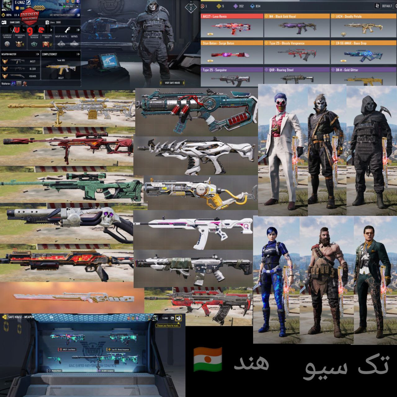 اکانت عالی خفن 352 گان اپیک 175 اسکین اپیک گان لجند Type 25 117 متیک اسکین گردونه M13 متیک اسکین گردونه ffar متیک 3 اسکین کریت 12 بار بتل لجند 8 بار مولتی یو ایدی: 6876073445575622657
