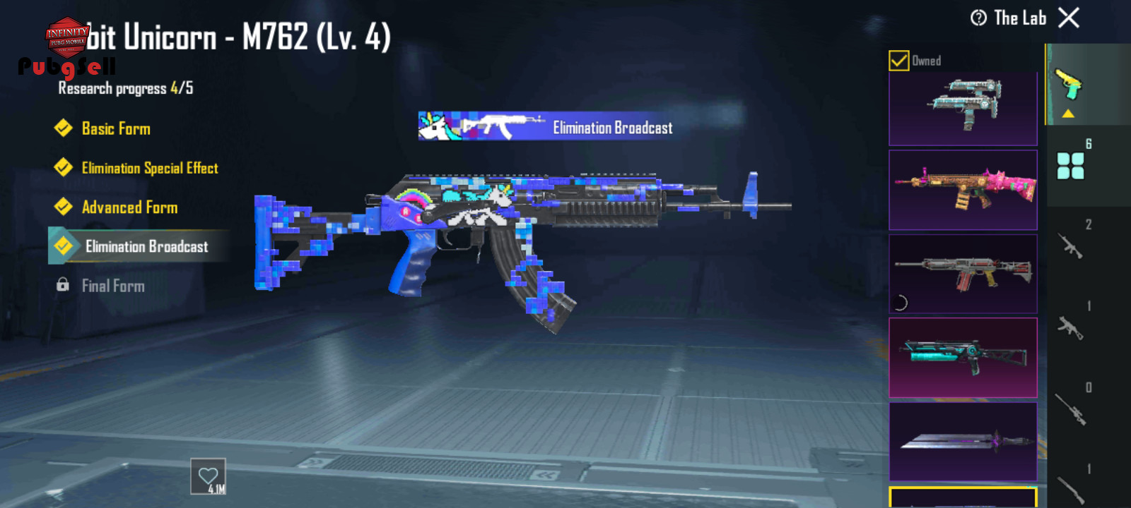 7تا گان لولی داره ام هفصد کیل پی پی بایزون کیل و بقیه لول 2 کارلو داره دو سیزن کانک هست و 12 سیزن الایت و 362 تا یوسی روشه و 100 تا جعبه طلایی