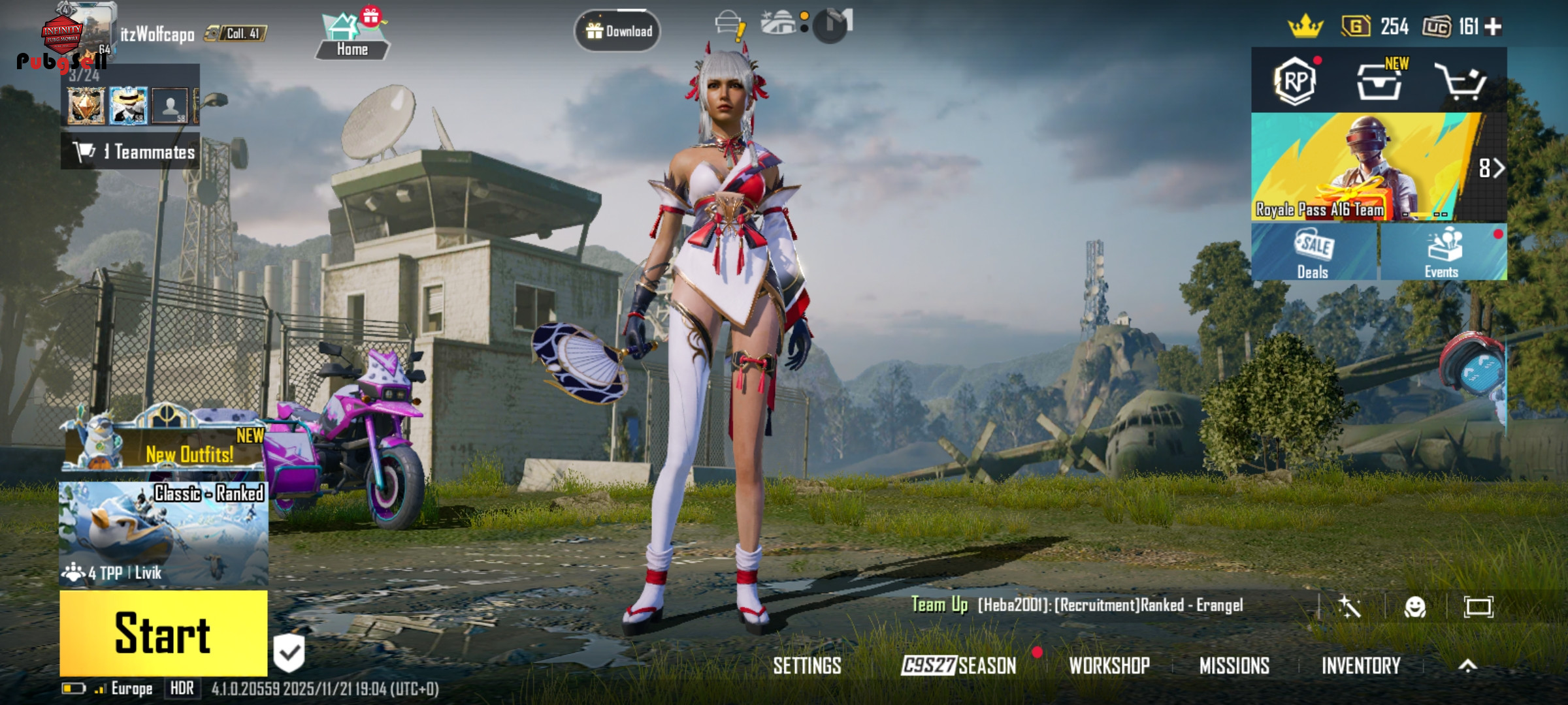 اکانت پابجی لول 64 امفور یخی لول 2 12 تا لباس متیک 6 سیزن الایت شده 12 تا گان آپگریدی داره که سه تاش غیر ارادی هست اکانت مفته پول لازمم
