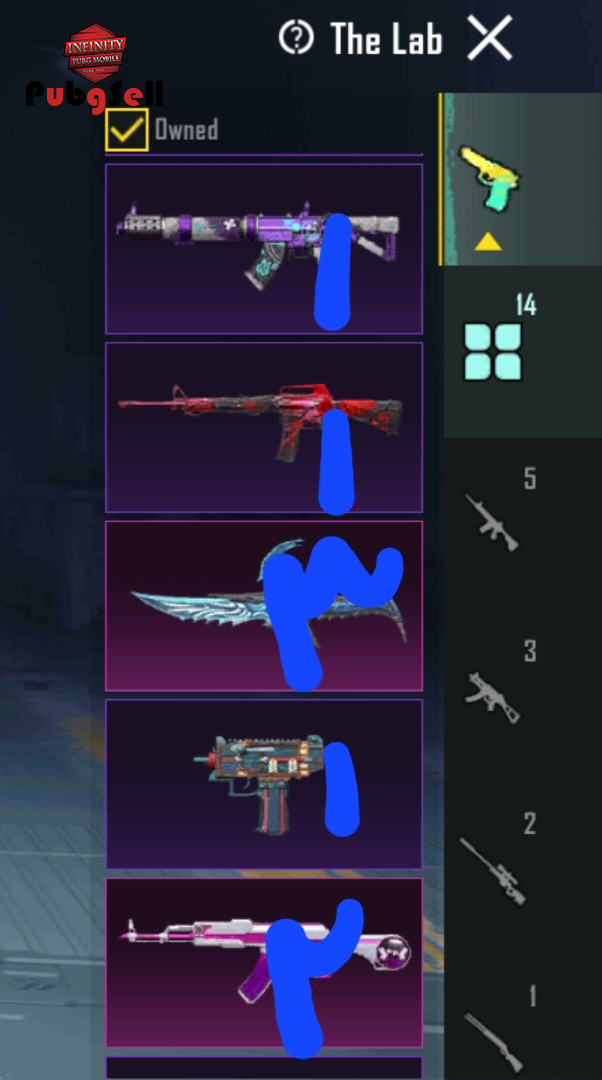 📌توضیحات:14 گان ابگیریدی _یوزی کیل مسیج فرعون _m24فرعون لول 1 _ ای کی خرگوش لول 2 _چاقو کیل مسیج و مکس _اسکالر لول 3 مکس_ پیکان ابگیریدی _جیپ ابگیریدی_ویکتور گردونه لول 1
