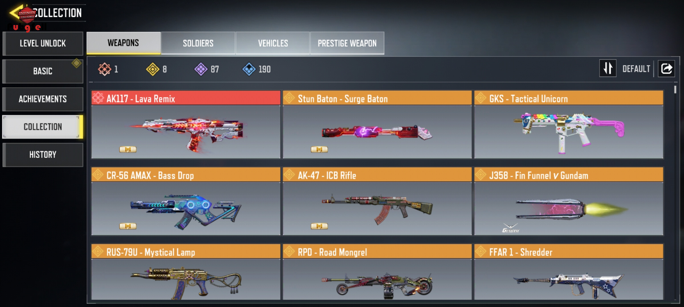 1 متیک 8 تا گان لجند دایموند و گلد داره زیاد