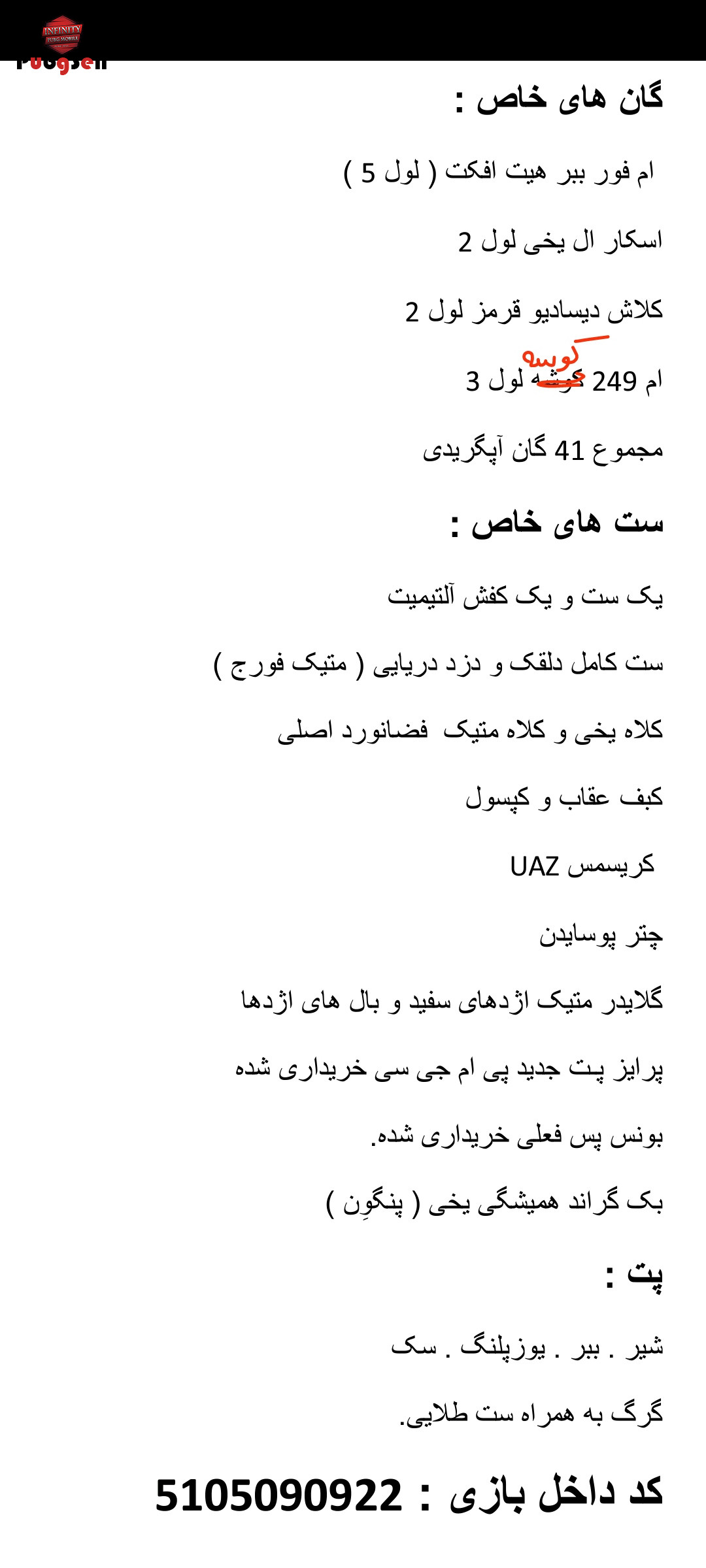تمامی توضیحات در PDF و عکس ها هستش اکانت خوبیه . فقط نزدیک 20 میلیون براش هزینه شده.