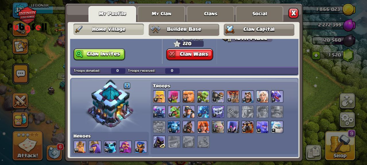 دوستان اکانت خوبیه واقعا همه چی هم تو عکس معلومه تازه تاون 13 کردم دوازده فول مکس بوده یه جورایی جز اکسیر ماین و گولد ماین هاش و یکمی از دیوارهاش هم مونده درکل اکانت خوبیه واقعا مناسب برا پلی دادن