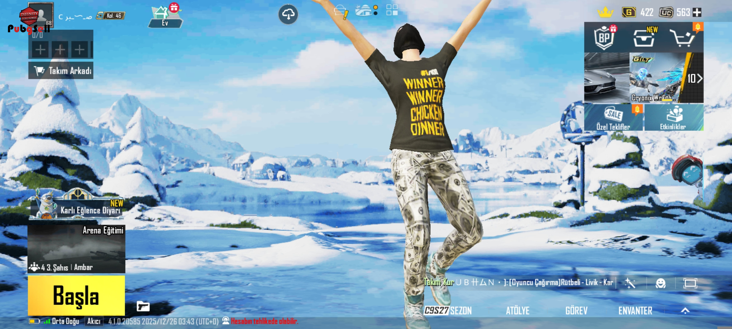 اکانت فول فول✅ یخی لول 6🥶✅ 563عدد یوسی✅ 6 عدد مینی متریال✅ 13 عدد گان اپگردی✅
