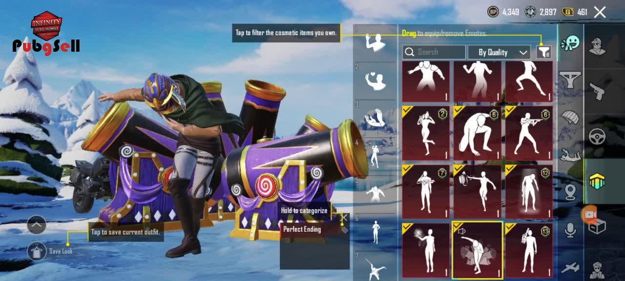 7 سیزن الایت شده،34 متیک،12 گان آپگرید داره،قبلا هم بونوس پس و هم پرایز پس گرفته شده،کیف متیک داره و همراه ست اتک آن تایتان بعضی از گان ها: پی 90 گلدن لول3 ام24 لوله یو ام پی مکس یوزی لول3 پیپی بایزن لول مکس پن لول2 شمشیر لول 2 حتما ویدئو رو ببیند همچی تو اونجاست