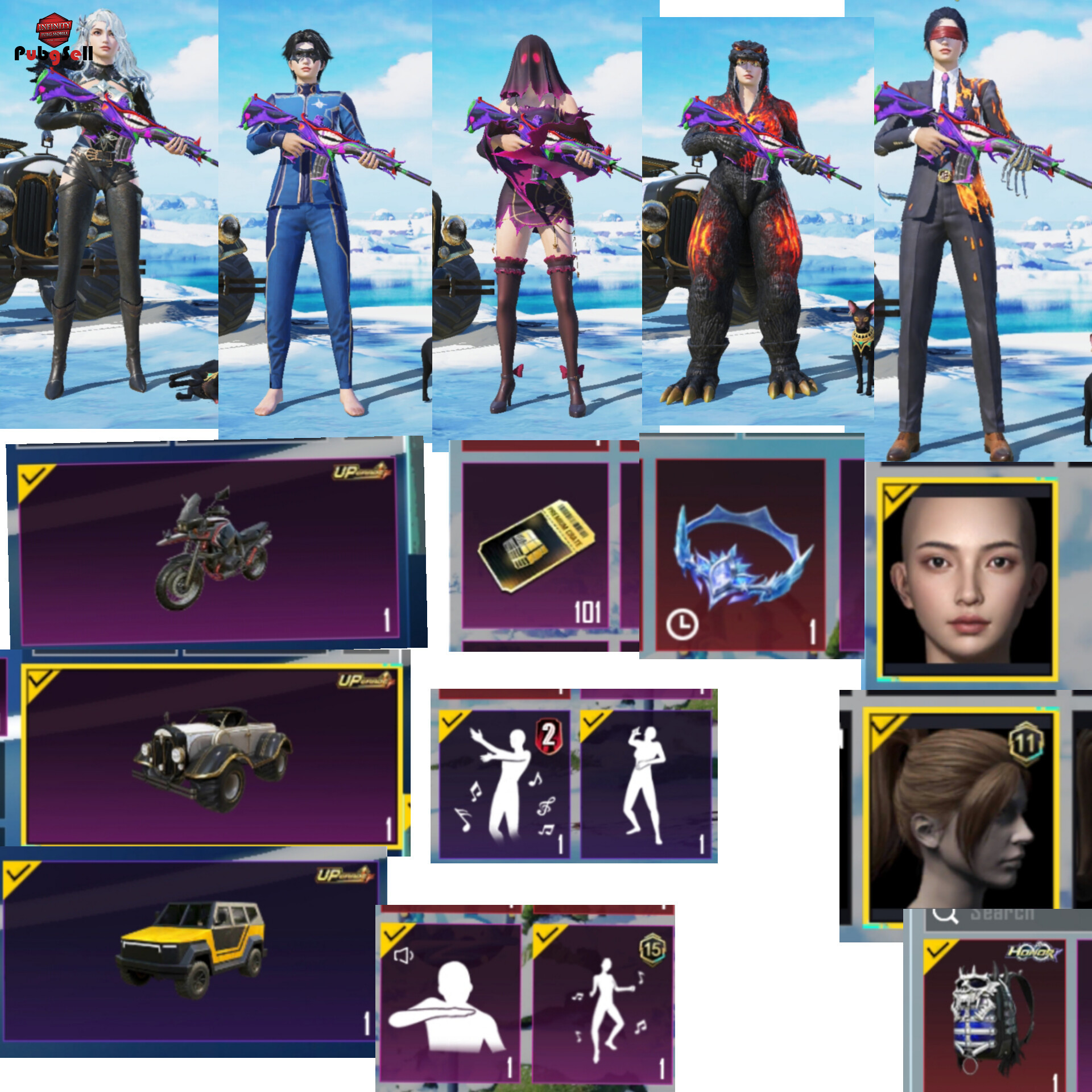 لباس کامل گودزیلا 21 گان ابگریدی 150K چکن توی اکانت موهای سیرن 14 صورت سیزن 16 گلایدر خفن اکانت دنس های خیلی خفن داره کارکتر سارا هم داره دنس خنده هم داره لطفاً خرید اختصاصی نکنید من کار دارم نمیشه انجامش بدم