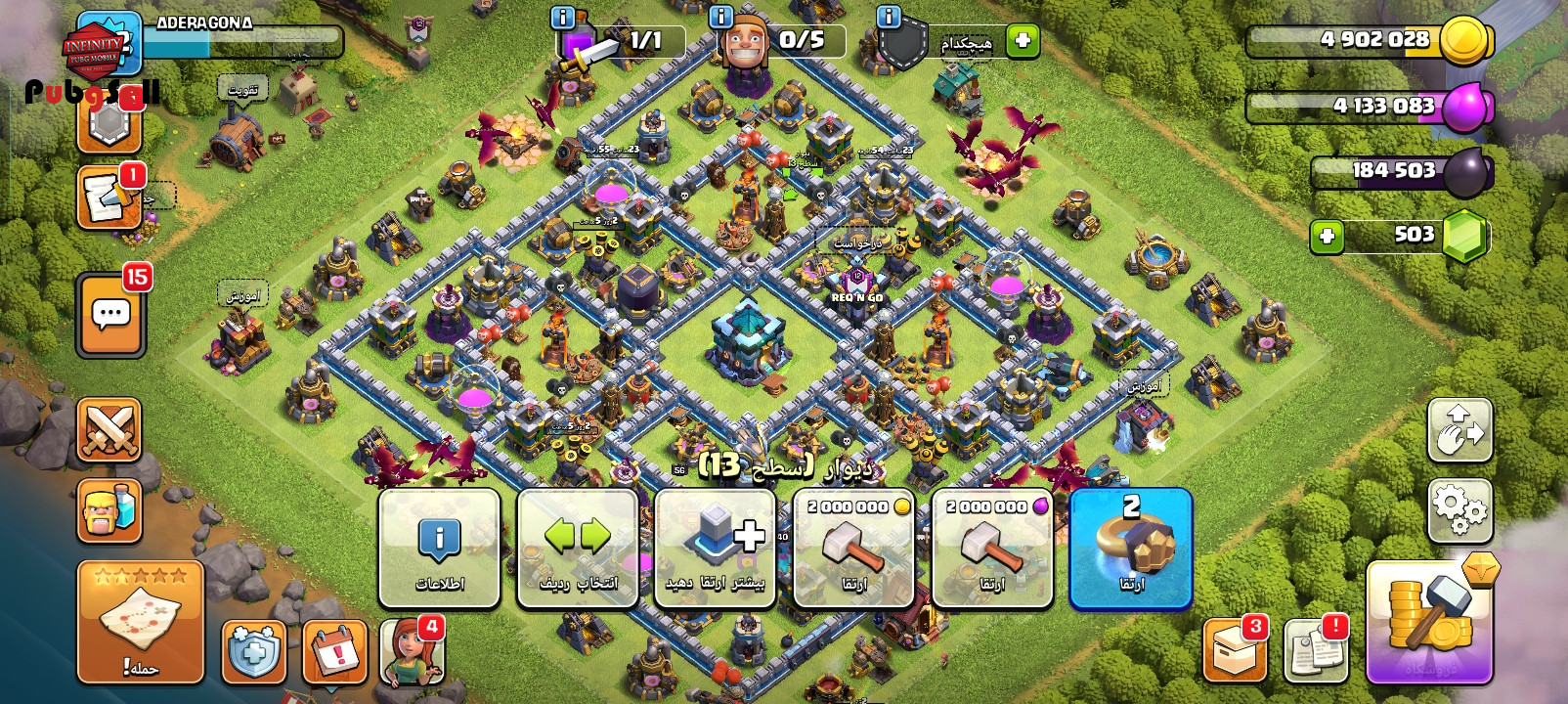 اکانت تاون هال 13 لول 132 به همراه 500 عدد جم و تغییر نام رایگان
